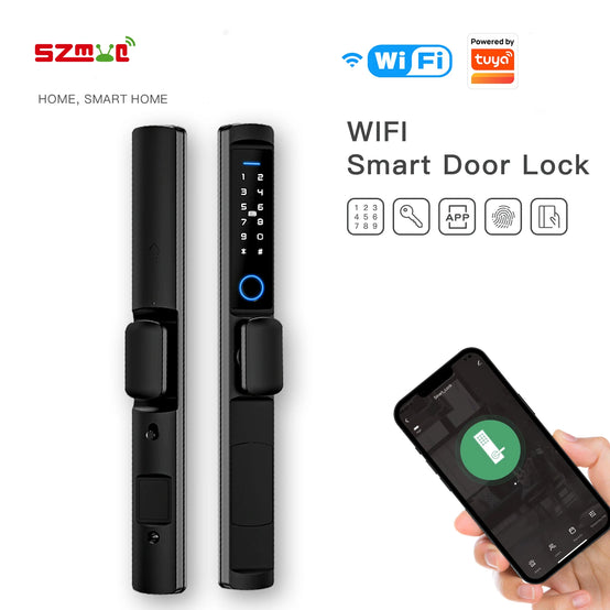 SZMYQ Tuya Wifi Smart App Lock Fingerprint Door Handle Digital Keyless Lock Waterproof For Hotels Narrow Profile Aluminum Door