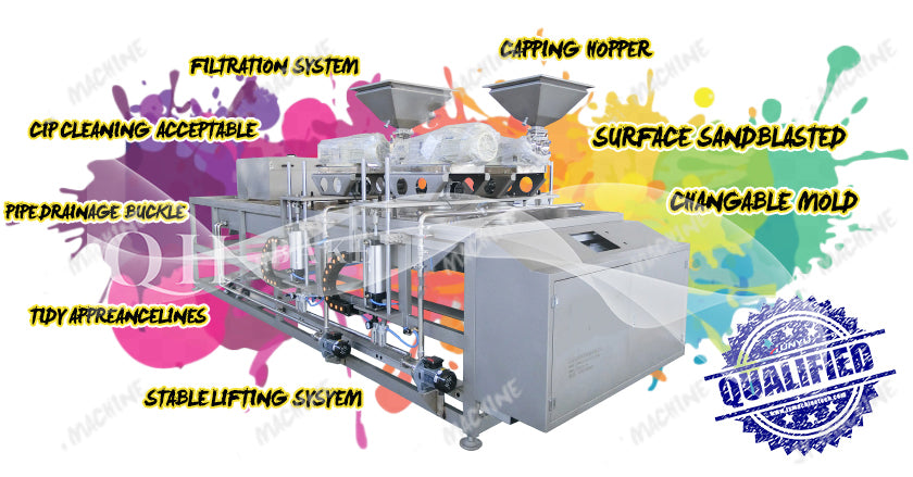 Note: there are three liquid in this system, they are juice(the main ingredients are water, glucose syrup, calcium lactate, white granulated sugar, Guar gum, xanthan gum, concentrated juice, Citric acid, and etc.. It is used to be the inner of popping boba),the Sodium alginate liquid(or you can call it solidification liquid, the main ingredients are water and Sodium alginate, it is used to forming the outer of popping boba),the Protection liquid(the main ingredients are water, fructose, and etc. It used to protect the popping boba in the packing box)