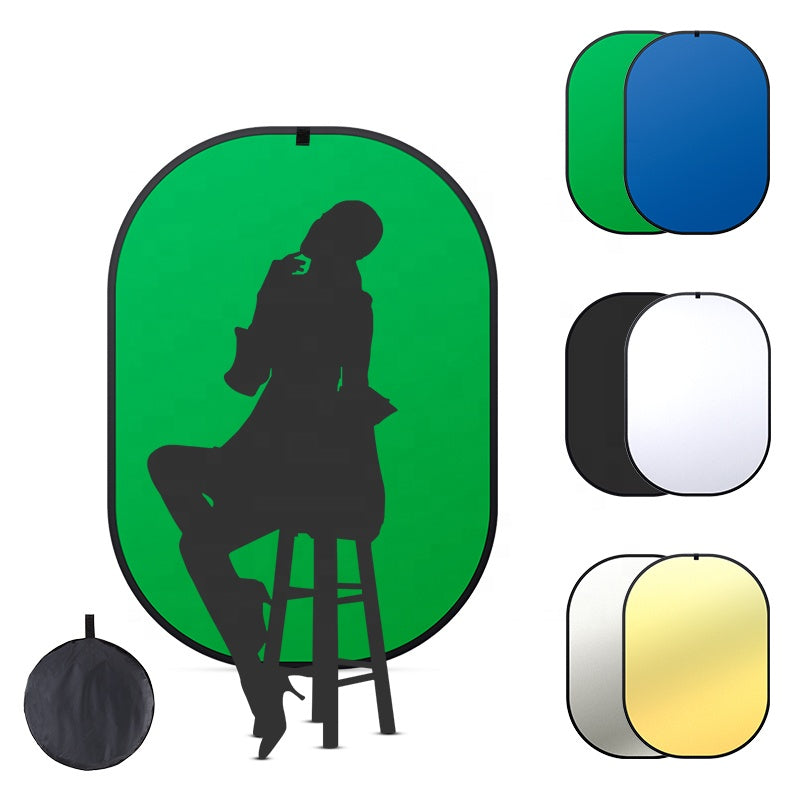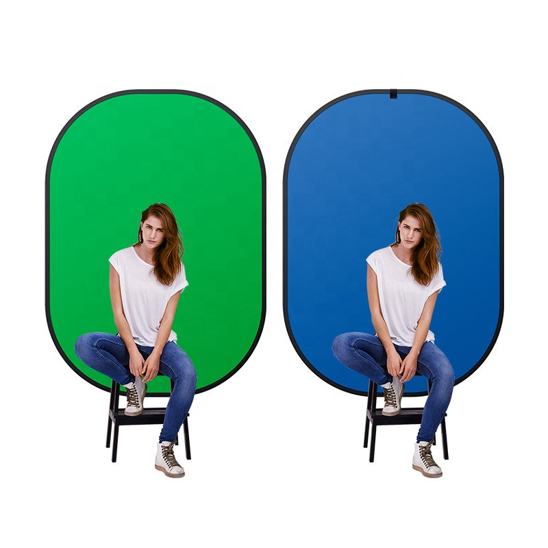 Takenoken Photo Studio Accessories 2 in 1 150x100cm Collapsible Green and Blue Background Muslin Pop Up Oval Backdrop for Vlog