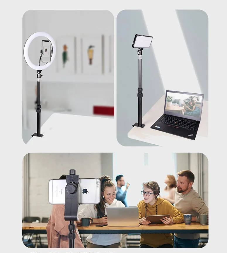 as ring light, DSLR camera, video camera, panel light, key light, webcam, and other mount accessories.