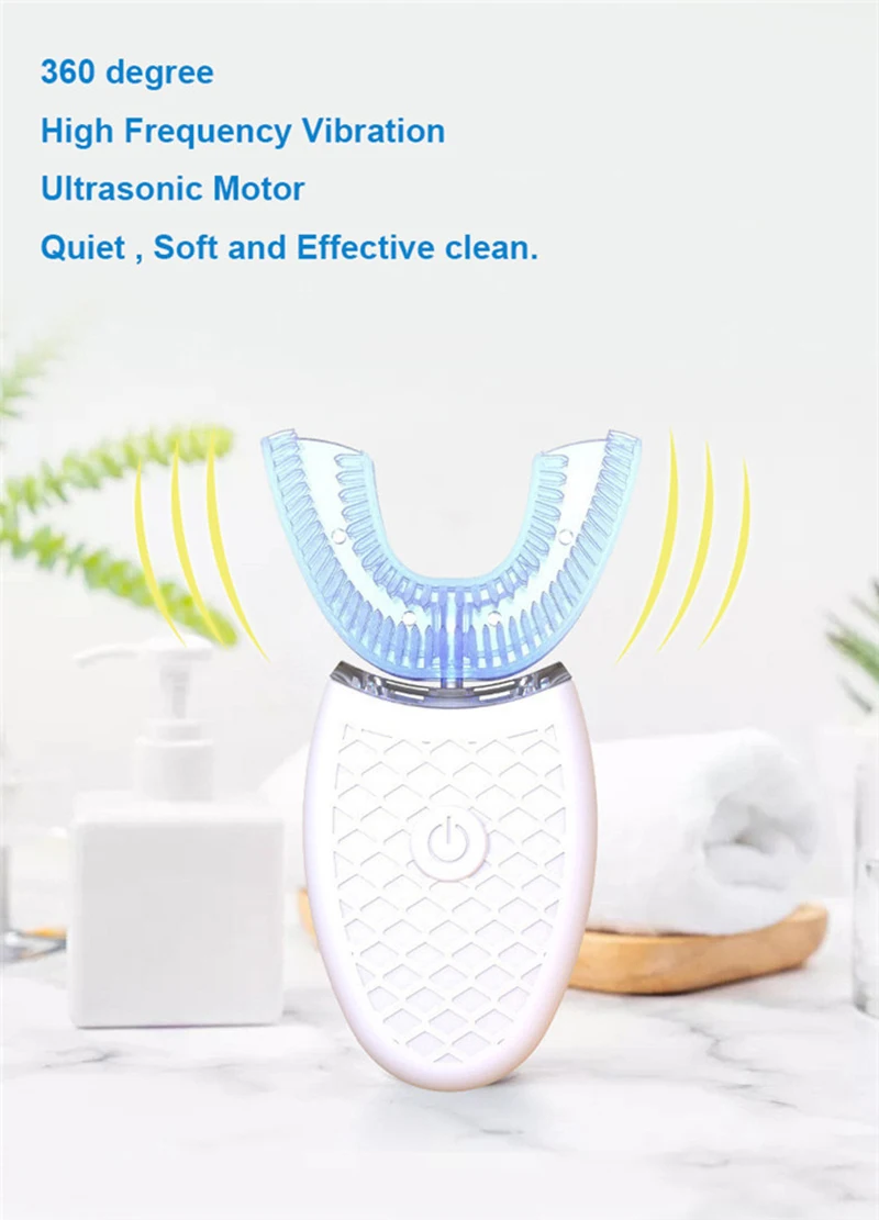 Teeth Cleaner Ultrasonic Electric Toothbrush Rechargeable U Shape Charging Silicone Toothbrush