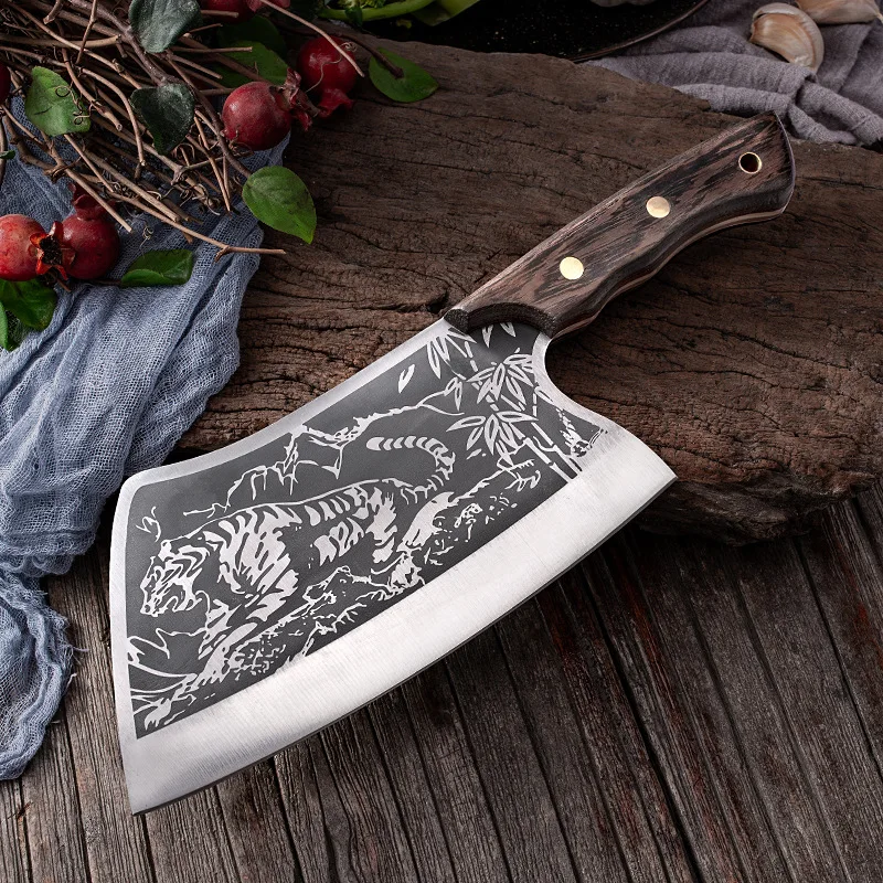 tiger pattern bone duty heavy carniceros para tang martillo cuchillo clewver blade messer kitchen boning cleaver butcher knife