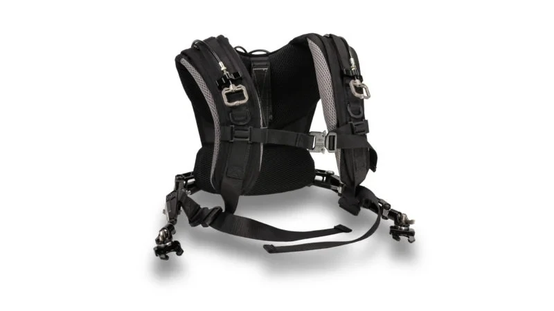 When you’re done operating, simply disengage the arms by pulling the release cords for each arm (in regular mode) and then comfortably rest them on the sides of the vest with the attached arm receiver.This allows you to keep the vest on in-between shots and then when you’re ready to operate again, simply re-engage the arms and re-attach the gimbal.