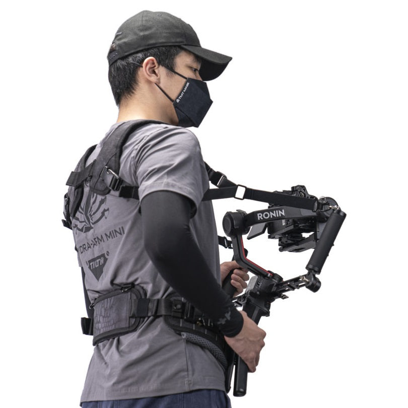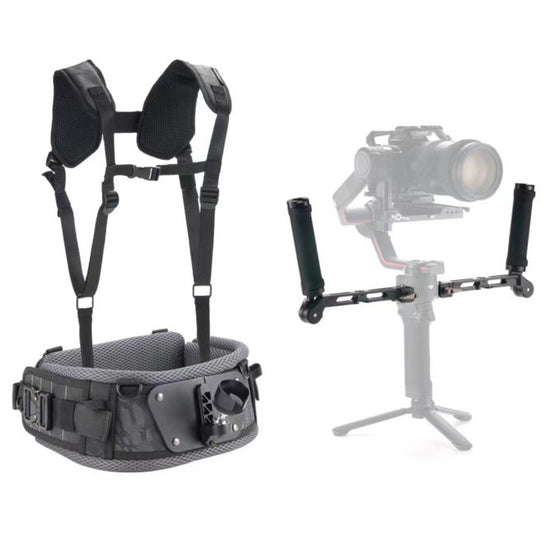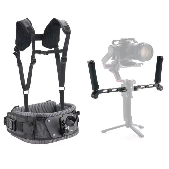 *The Waist Vest features a height adjustable adapter that allows you to mount the DJI RS2, RSC2, RS3 or RS3 Pro via the bottom of the battery handle or the extended grip tripod.