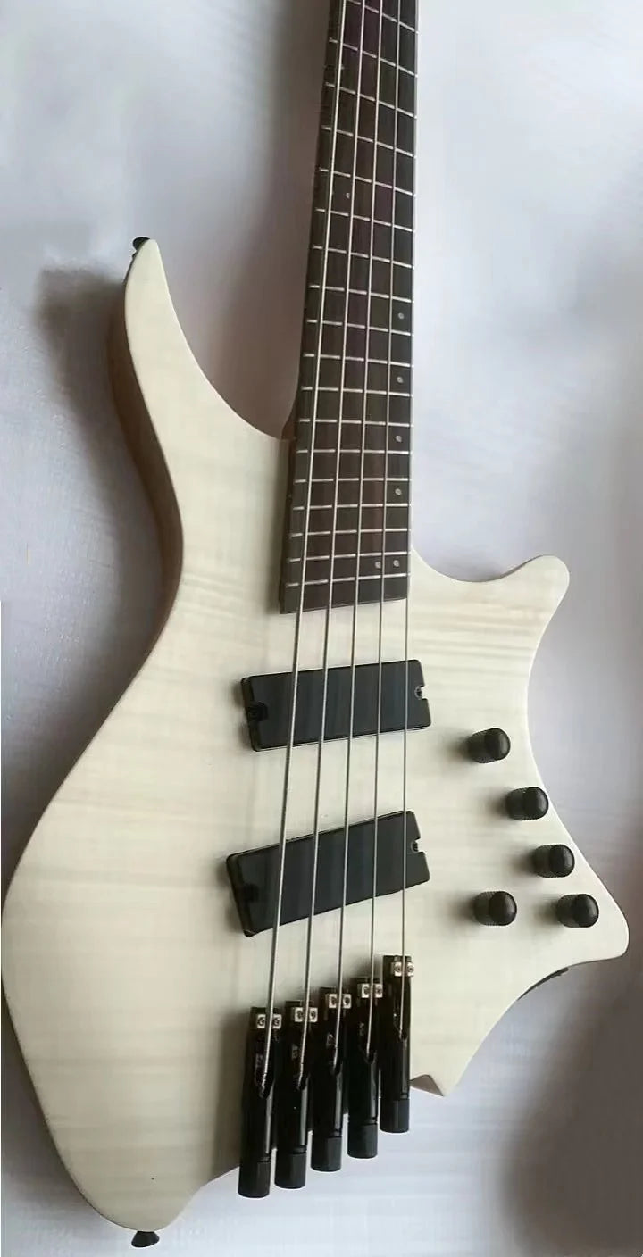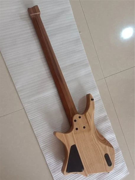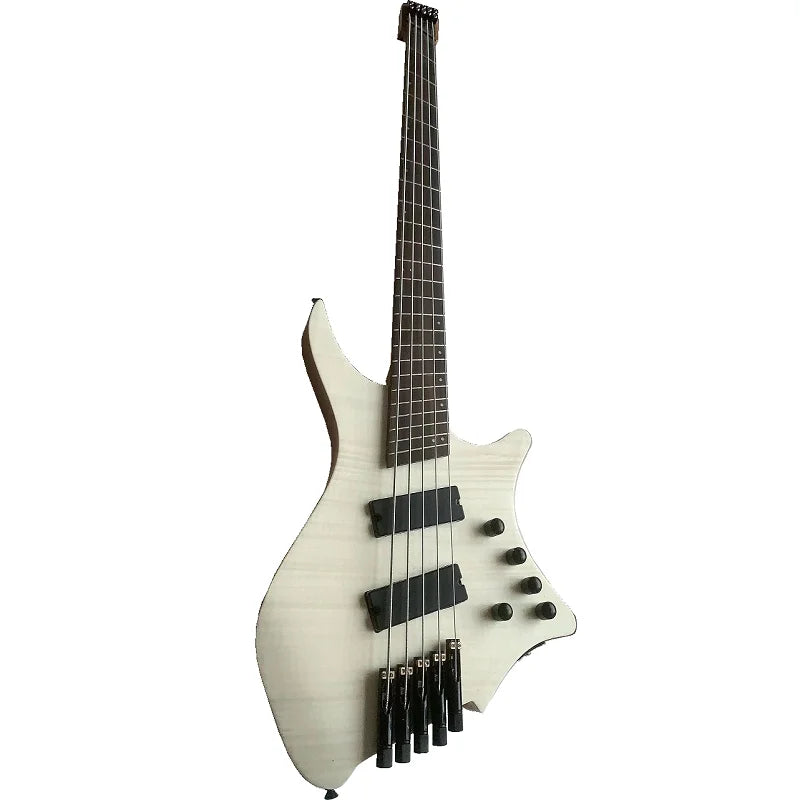 Top Quality ACKI Factory Custom 5 Strings Fanned Fret Headless Electric Bass Guitar Ash Body Roasted Maple Neck