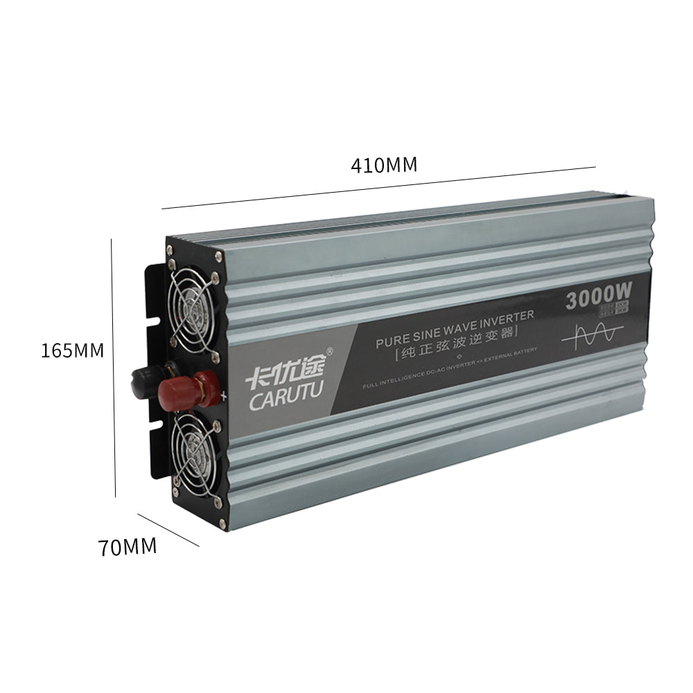 True rated continuous 3000Watts pure sine wave output power and 6000Watts peak power, featuring 1 universal AC sockets, 2