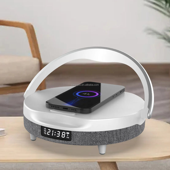 Trending Products 2024 New Arrival Wireless Charging Desk Table Lamp Clock BT Music Speaker Ambient Touch Night Light