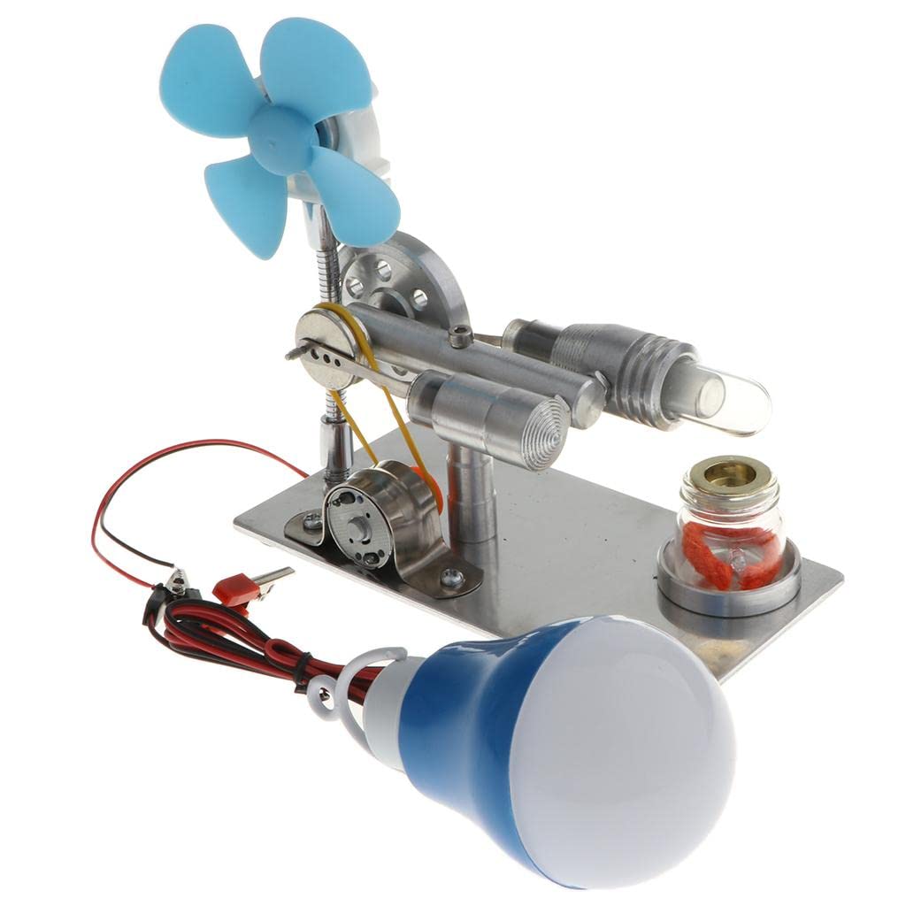 Stirling Engine Model / Physical Motor Power Flywheel Fanner Rotating, LED Light Heat Engine Stirling Engine Electricity Generator, Energy Conversion Mechanical Work