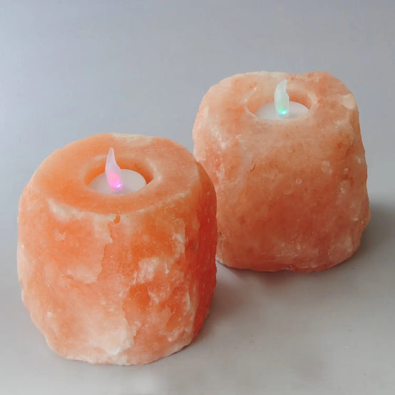 GENUINE HIMALAYAN SALT Made of genuine pink Himalayan salt, these tea light holders are sourced from Pakistan and cut to the perfect shape. They are handcrafted and each have their own unique shape, resulting in no two candleholders being exactly the same size and color.