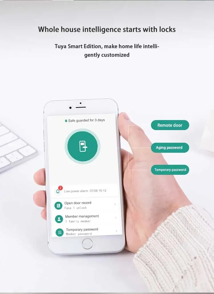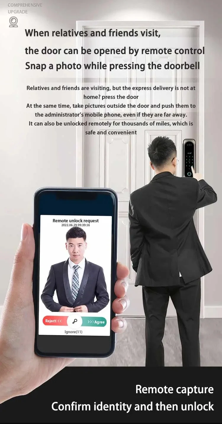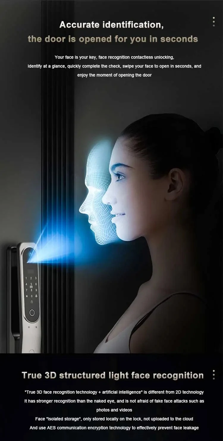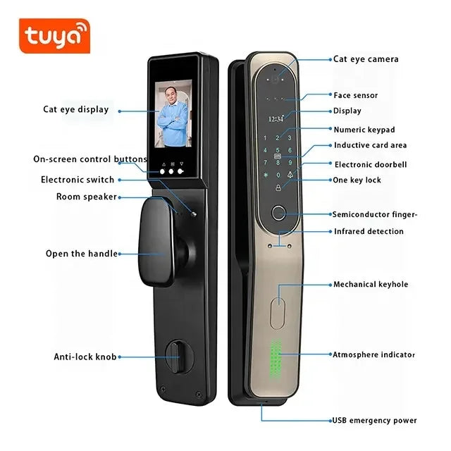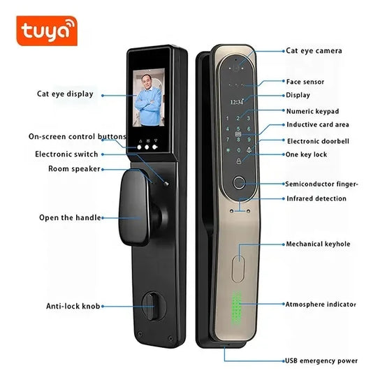 Tuya App Full Automatic Smart Lock WiFi Wireless Fingerprint Password RFID Card App Digital Door Lock With Camera