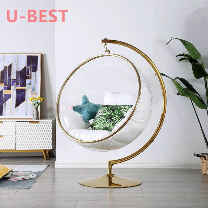 U-BEST China Living Room Clear Indoor Hanging Acrylic Bubble Arm Clear Acrylic Bubble Ball Chair With Stand