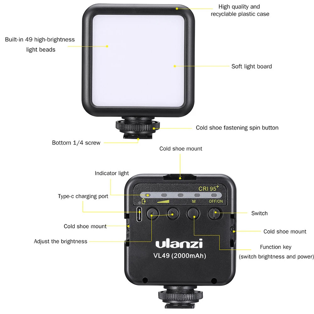 ULANZI VL49 LED Light Video 6W Mini Built-in 2000mAh Battery 5500K Photographic Lighting VS W49 LED Light