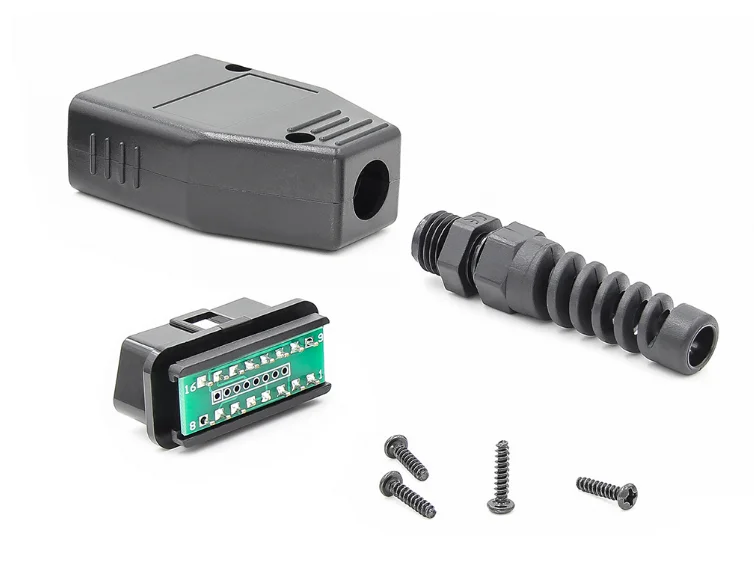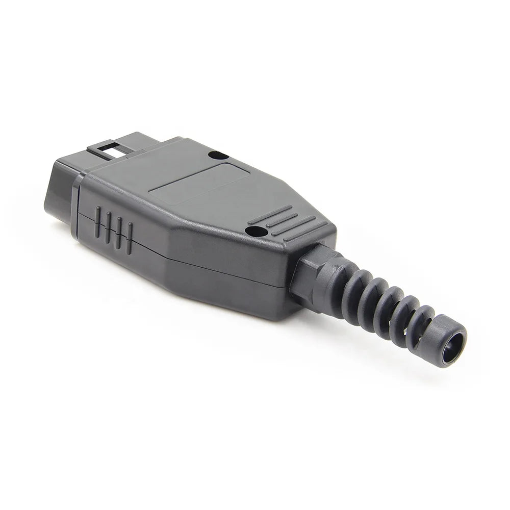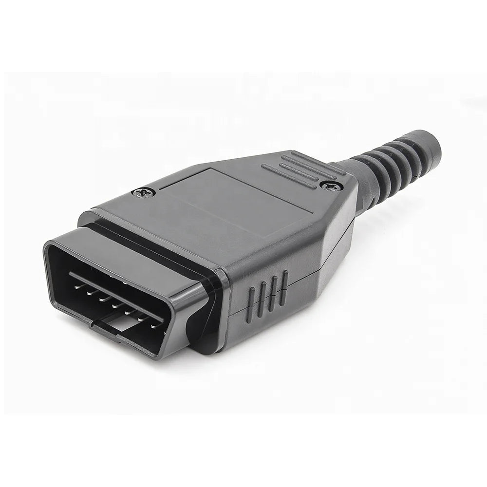 Universal single black OBD2 16 pin male plug connector for OBD cable