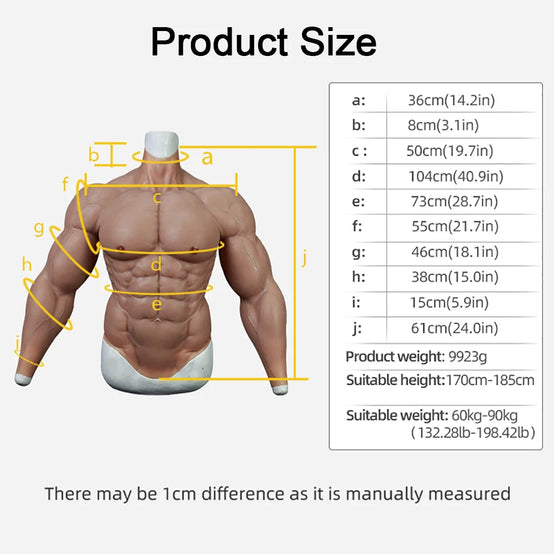 | Safety material | This muscle suit is Made of high-quality medical silicone, special emphasis on our products without odor and vinegar smell. It is not sticky and it is oil-free. |
