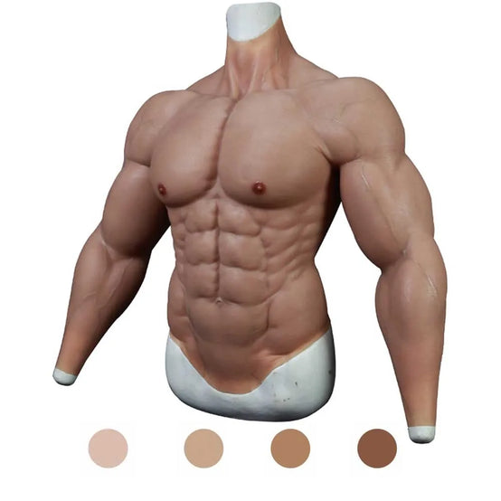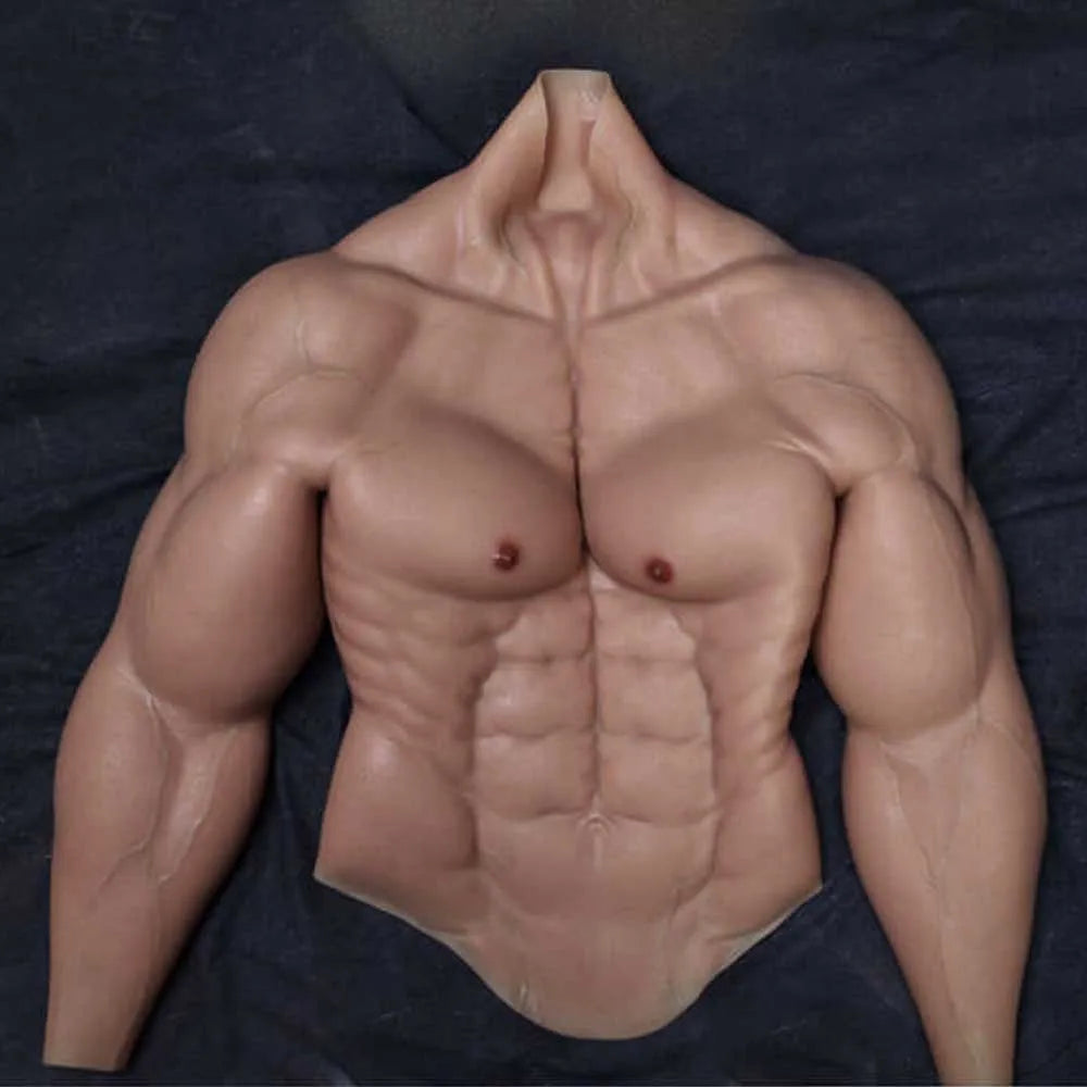Realistic Fake Muscle Suit Silicone Artificial Gel Macho Costume For Man Cosplay Halloween Chest Bodysuit Stimulation Skin