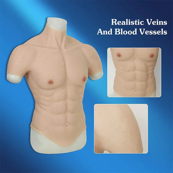 Realistic Muscle male Chest vest Soft Fake Muscle crossdresser Cosplay Halloween Costume Silicone Fake Muscle Suit