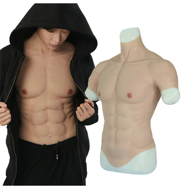 Realistic Muscle male Chest vest Soft Fake Muscle crossdresser Cosplay Halloween Costume Silicone Fake Muscle Suit