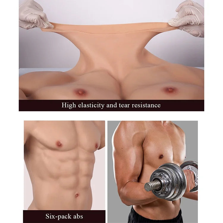 URCHOICE Silicone male chest Upper bodysuit Cosplay Crossdresser Artificial muscle suit vest with Muscular Arms