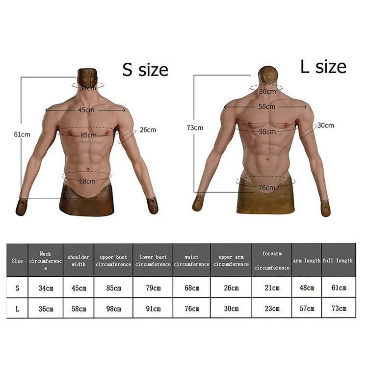 Simulation Abdominal Silicone fake Chest for Cosplay Costumes Muscle Vest Realistic Artificial  muscle Suit with arm