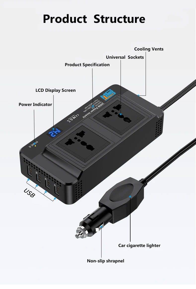 Usa Uk European Universal Socket 200W Inverter DC AC Converter 12V 24V To 110V 120V 220V 230V 240V Mini Car Power Inverter 200W
