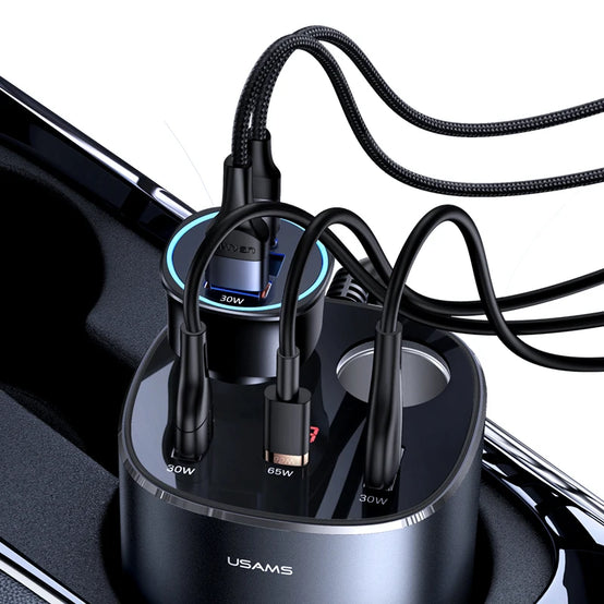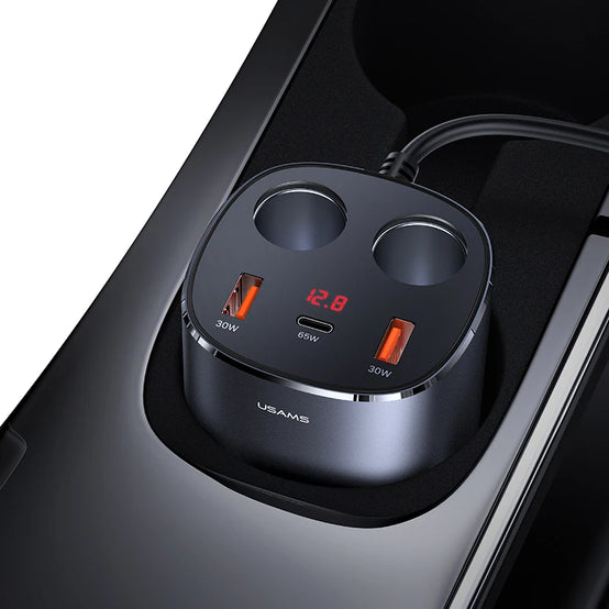 USAMS Trending 2021 245W 2A+C 3 Ports + Dual Cigarette Lighters Digital Display Fast Car Charger