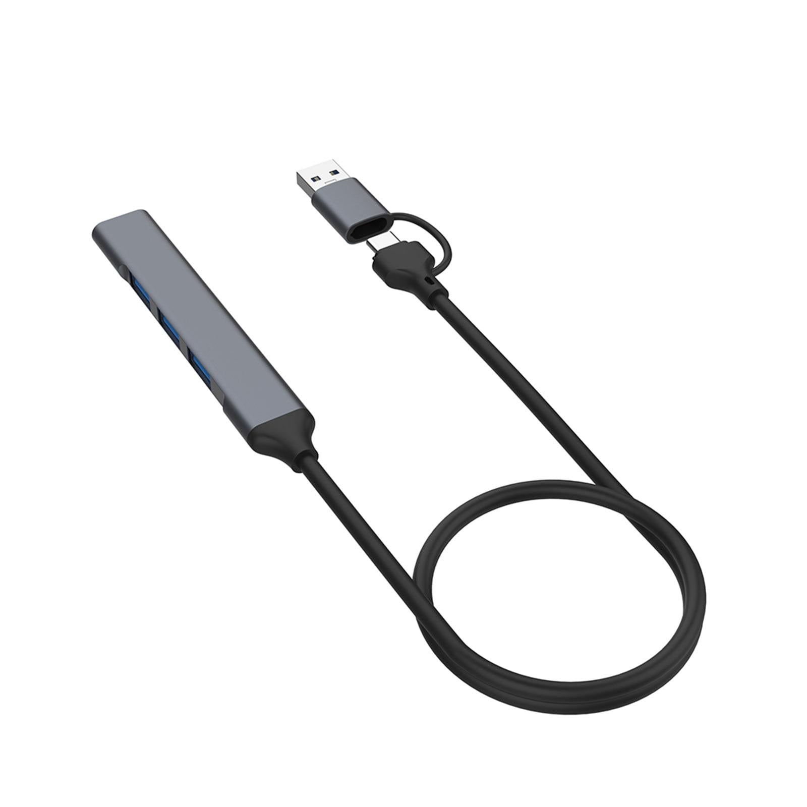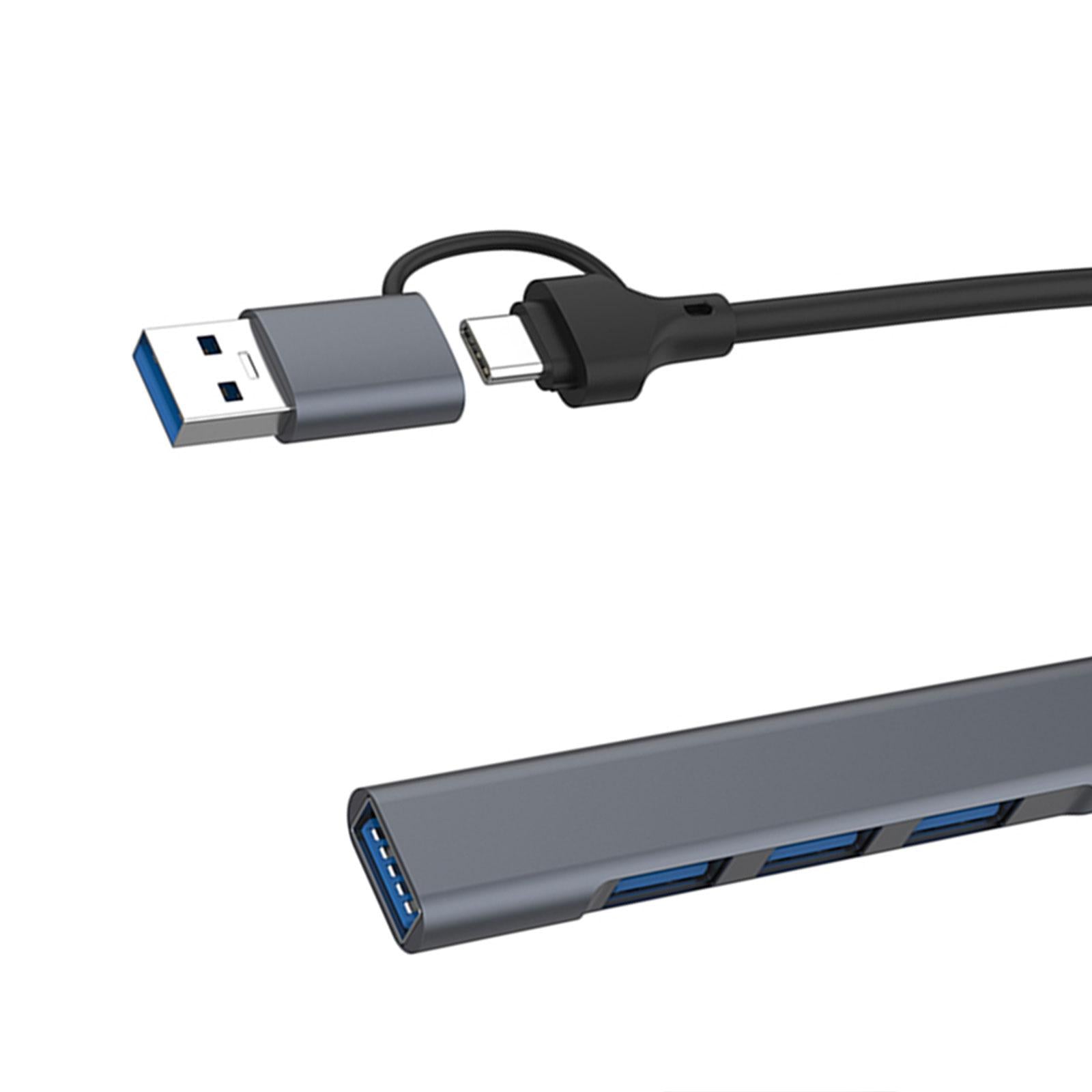 USB A USB C Hub Extensions to USB 3.0 and USB 2.0 Adapter Gray Color Durable 4 Port