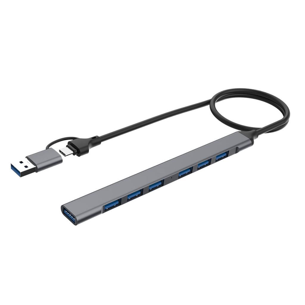 USB A USB C Hub Extensions to USB 3.0 and USB 2.0 Adapter Gray Color Durable 7 Port