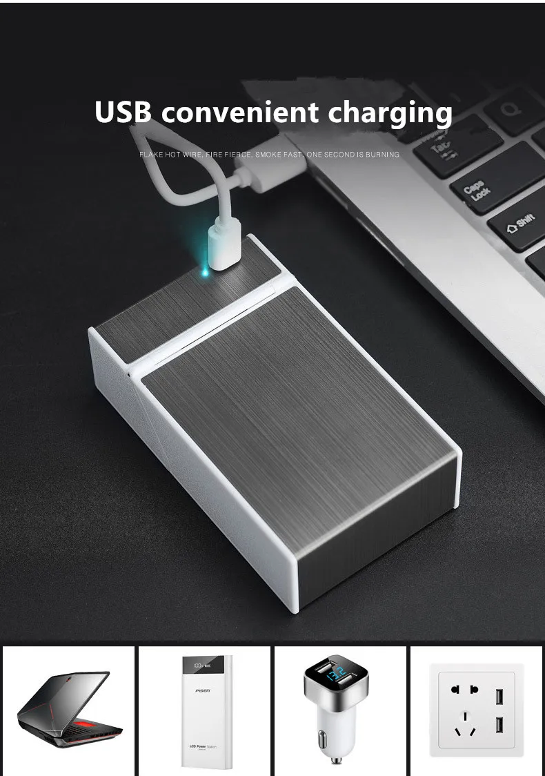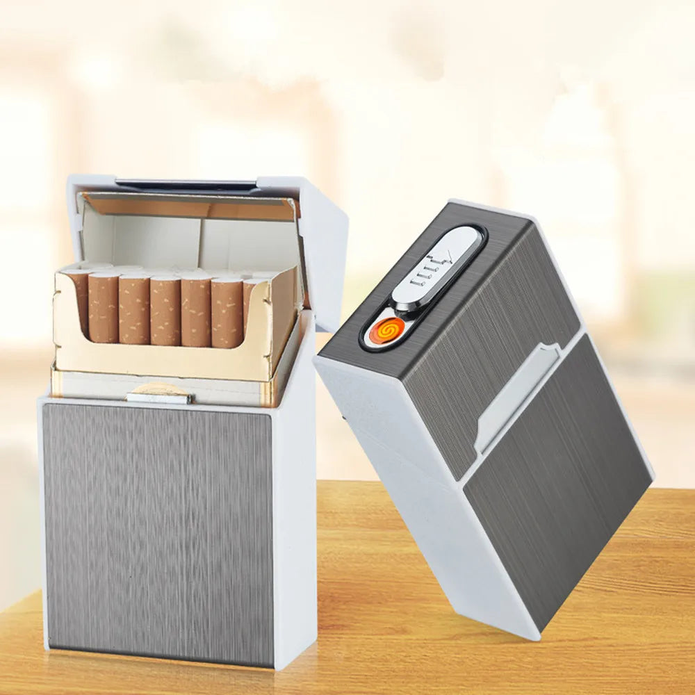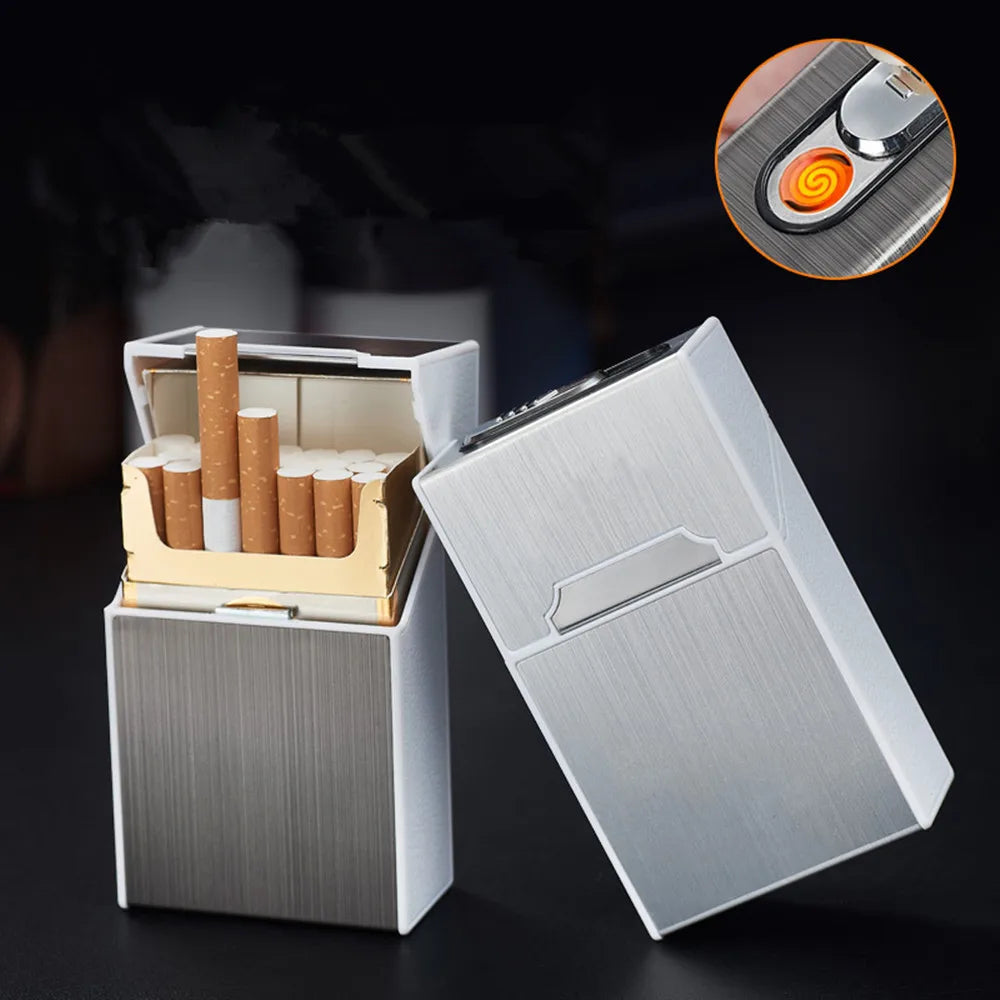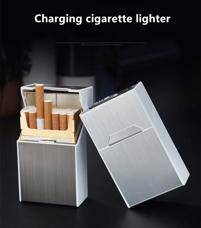 USB Charging Metal Cigarette Case Lighter Creative Capable of Installing 20 Portable Charging Lighters Cigarette Case