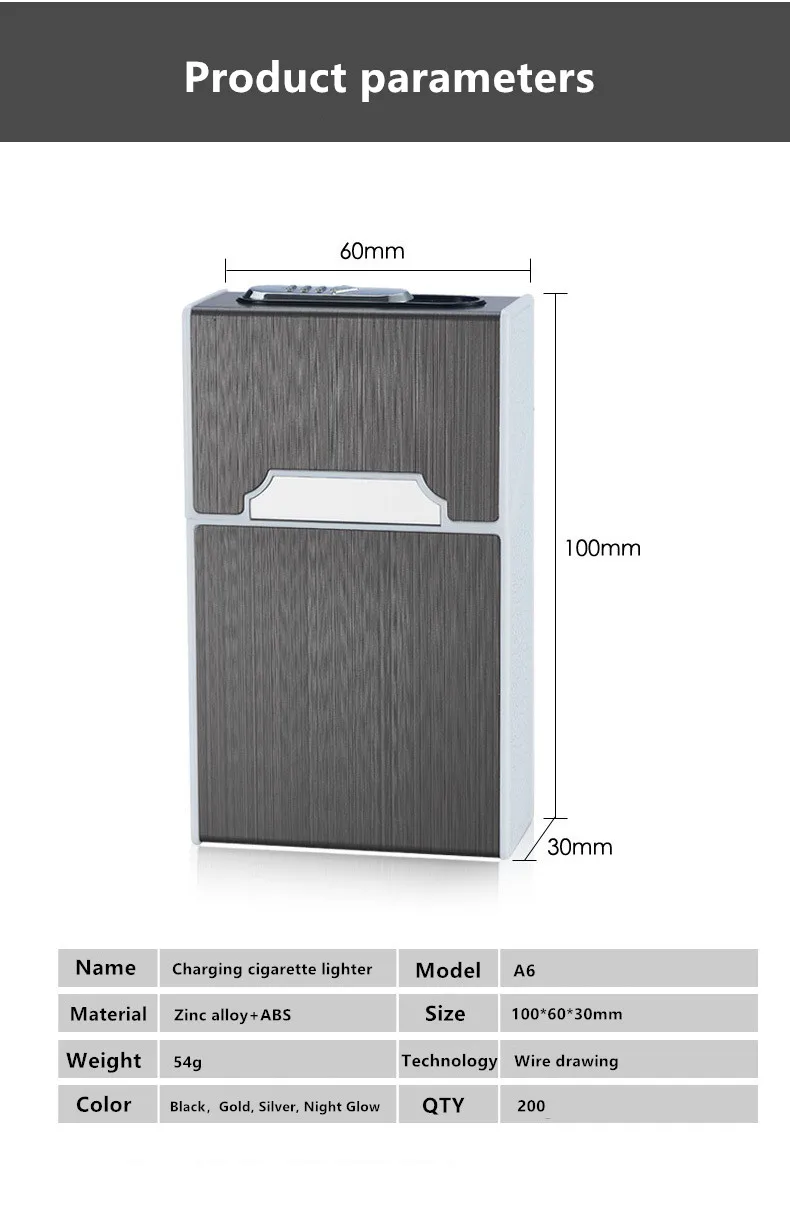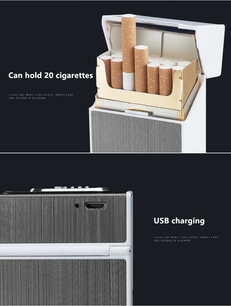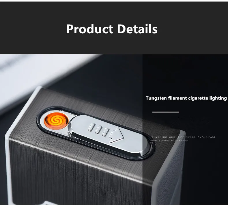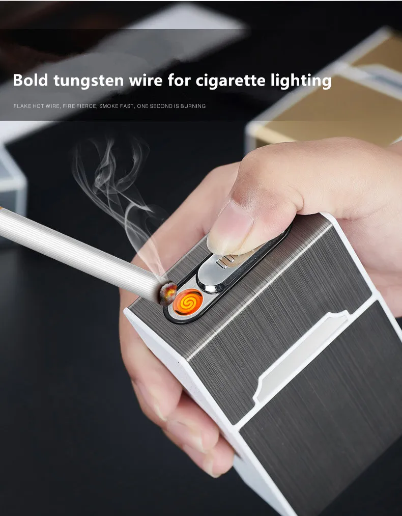 USB Charging Metal Cigarette Case Lighter Creative Capable of Installing 20 Portable Charging Lighters Cigarette Case