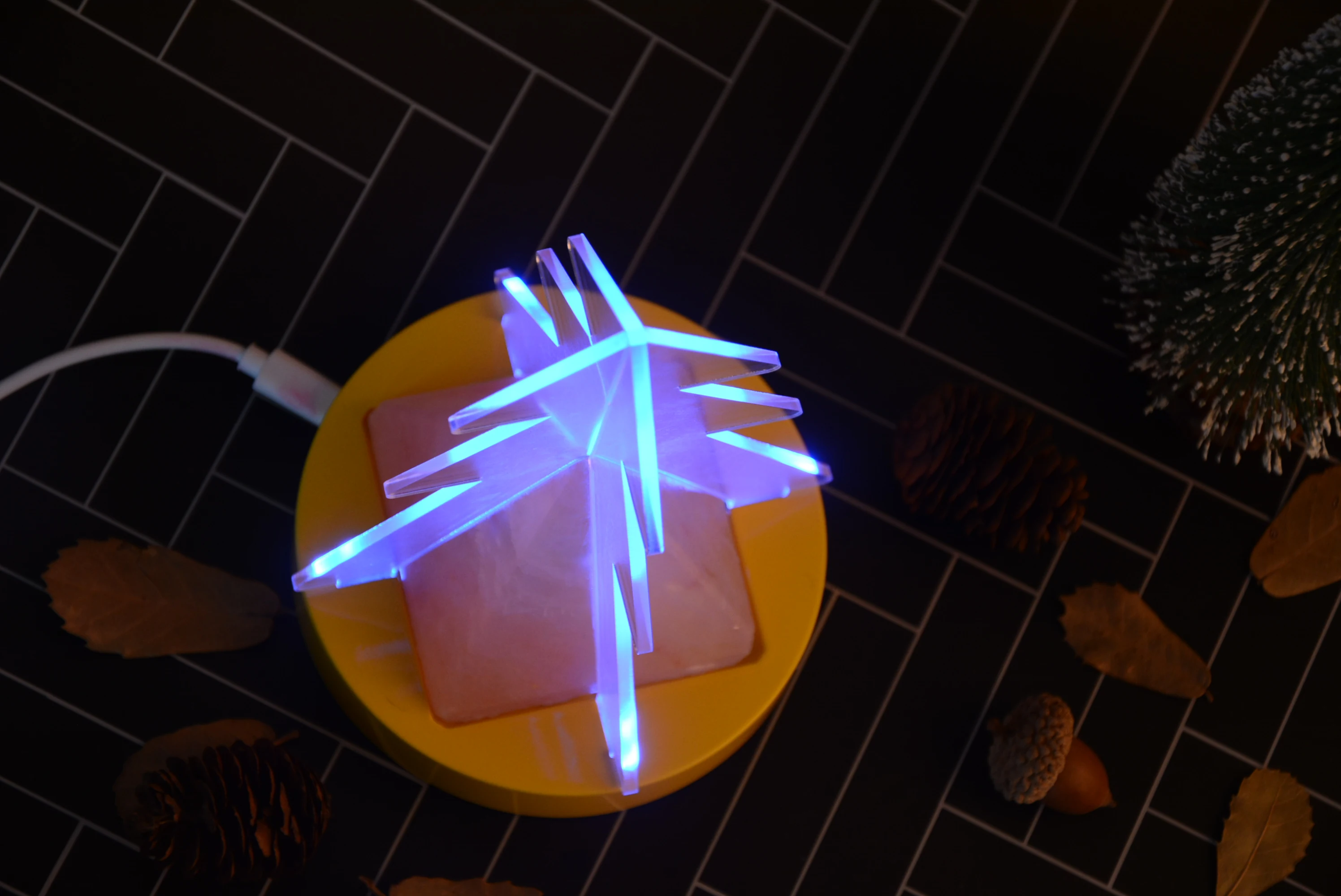 * Himalayan Salt Lamp: The Himalayan Rock Salt emits a warm amber glow when lit, providing a calming atmosphere that helps create a feeling of peace and relaxation.