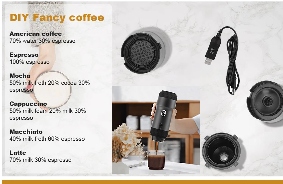 USB RECharRGEABLE Portable Electric Coffee small Capsules Espresso Machine Self-Heating Compatible big Capsule Ground Coffee
