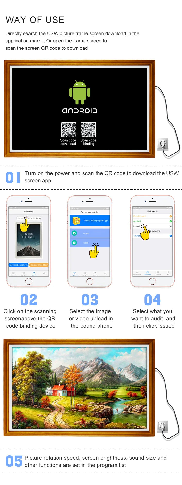 Usingwin consumer electronics lcd screen frame smart art frame 32inch digital photo frame with App