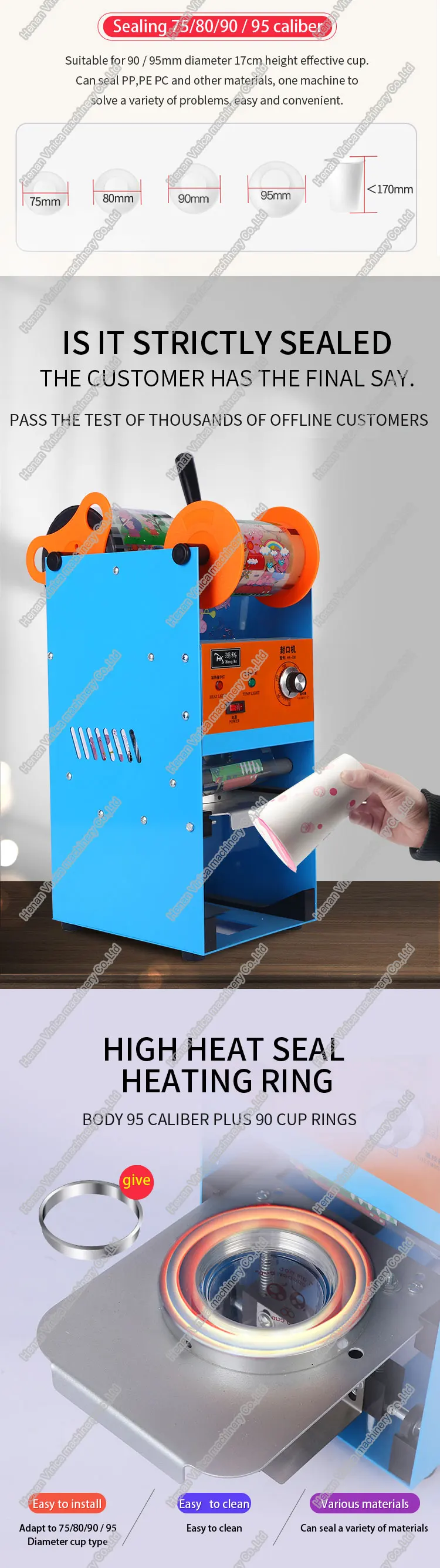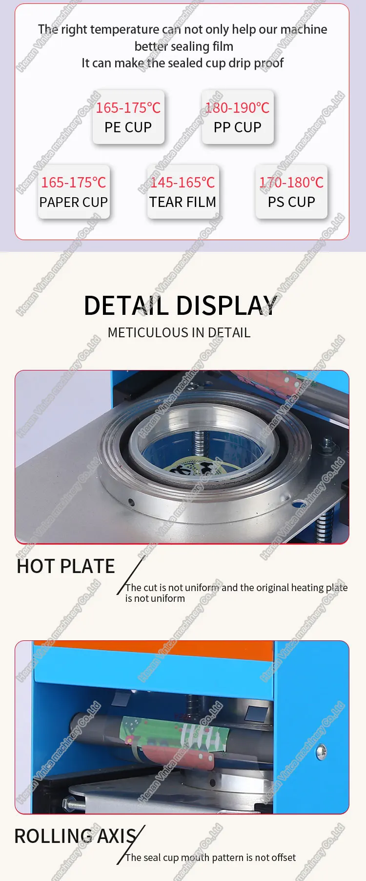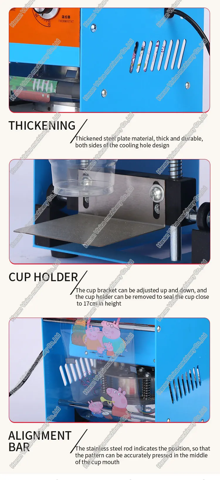 Vinica-D8 Manual press plastic cup sealing machine 95mm/90mm/75mm Sealer Cup for drink