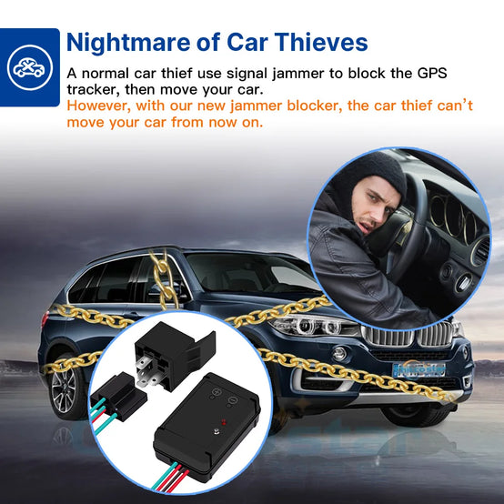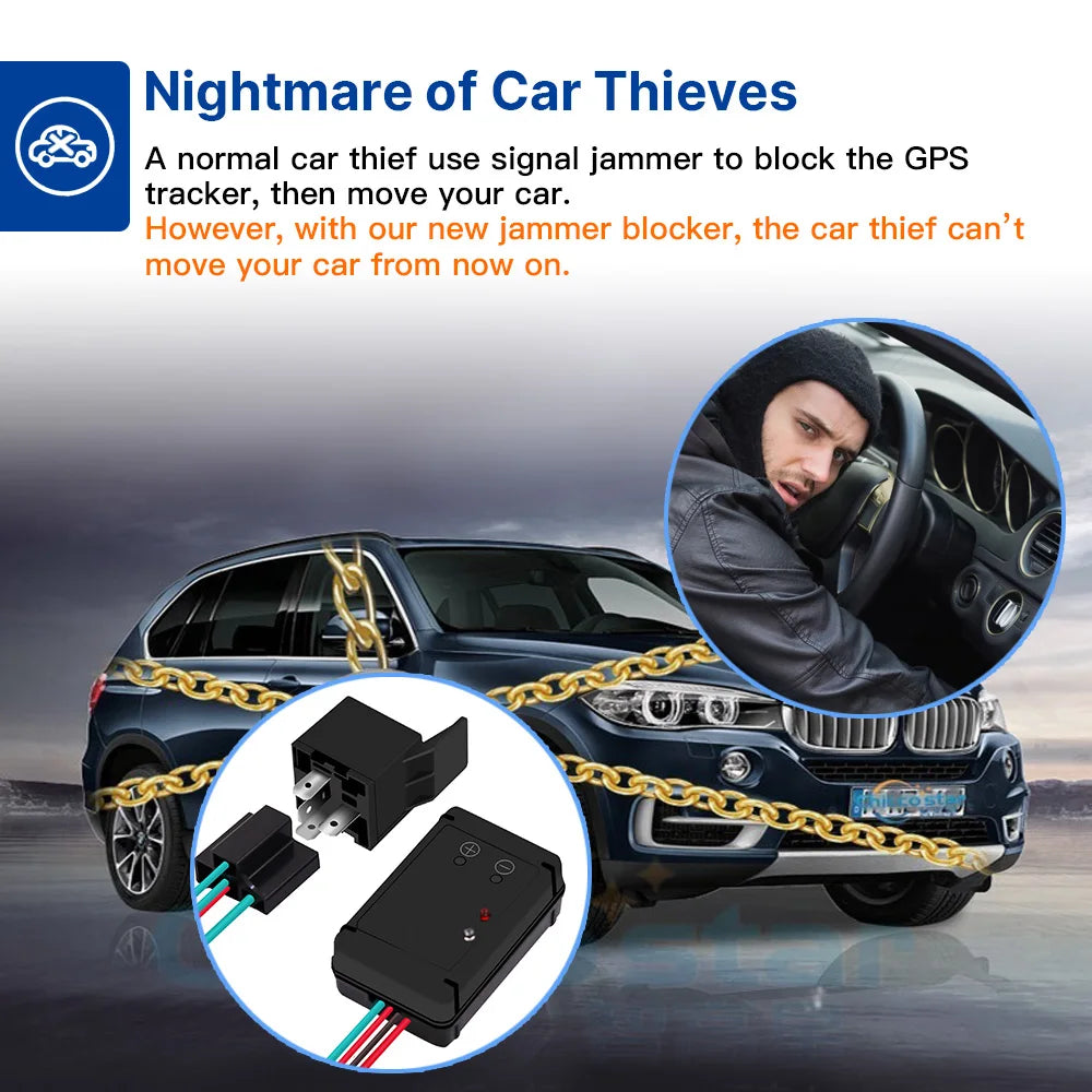 Vjoycar 12V Wireless Relay Immobilizer Car Anti-Jammer Anti Theft System for GPS Tracker Then Stop Car Automatically