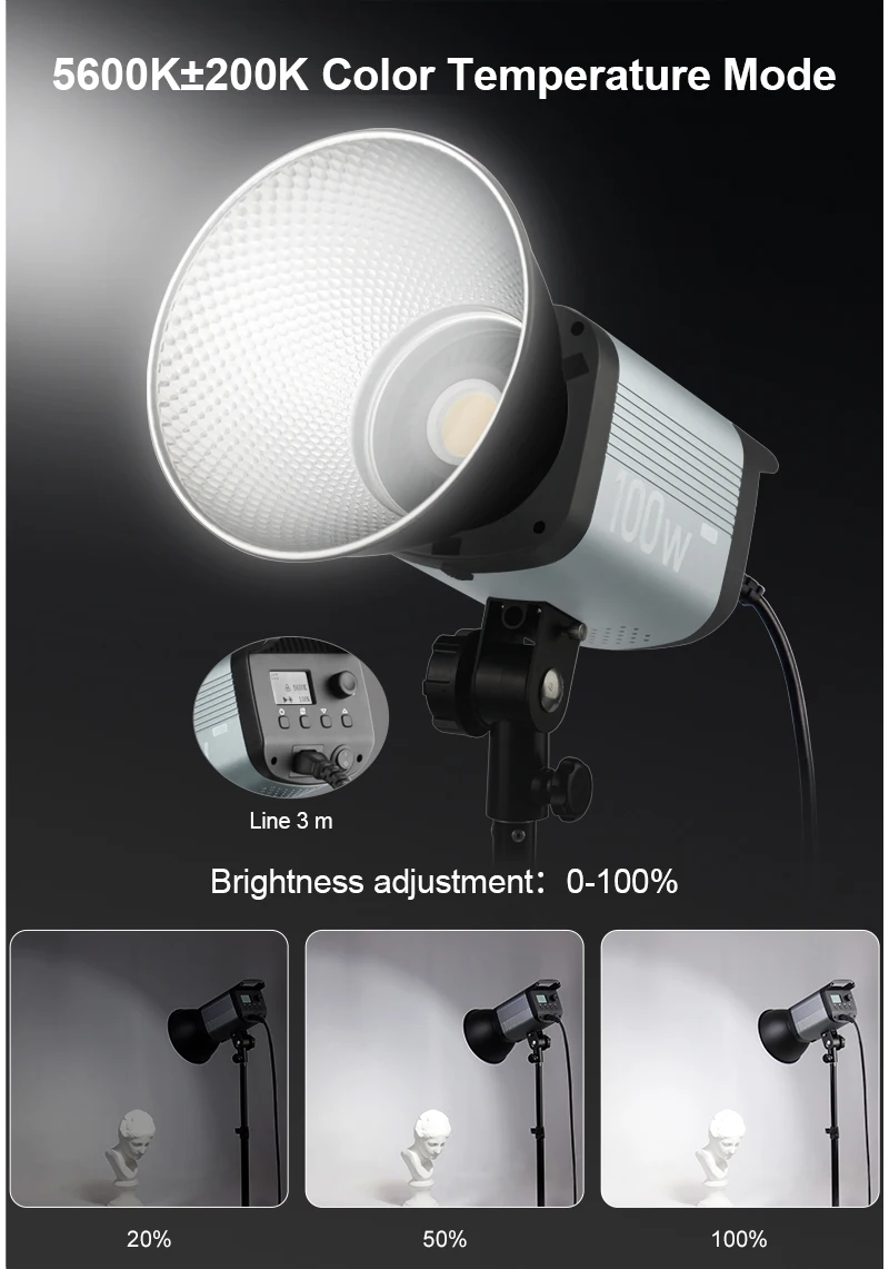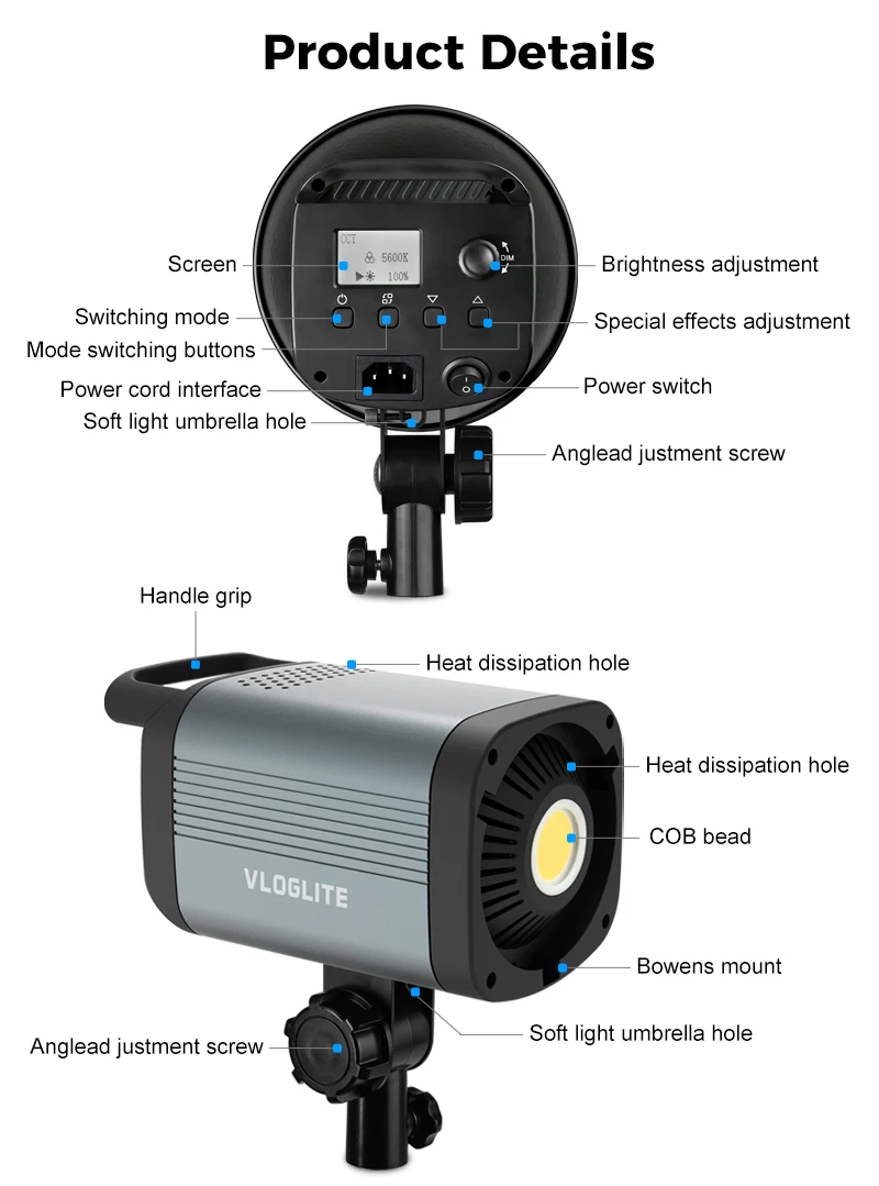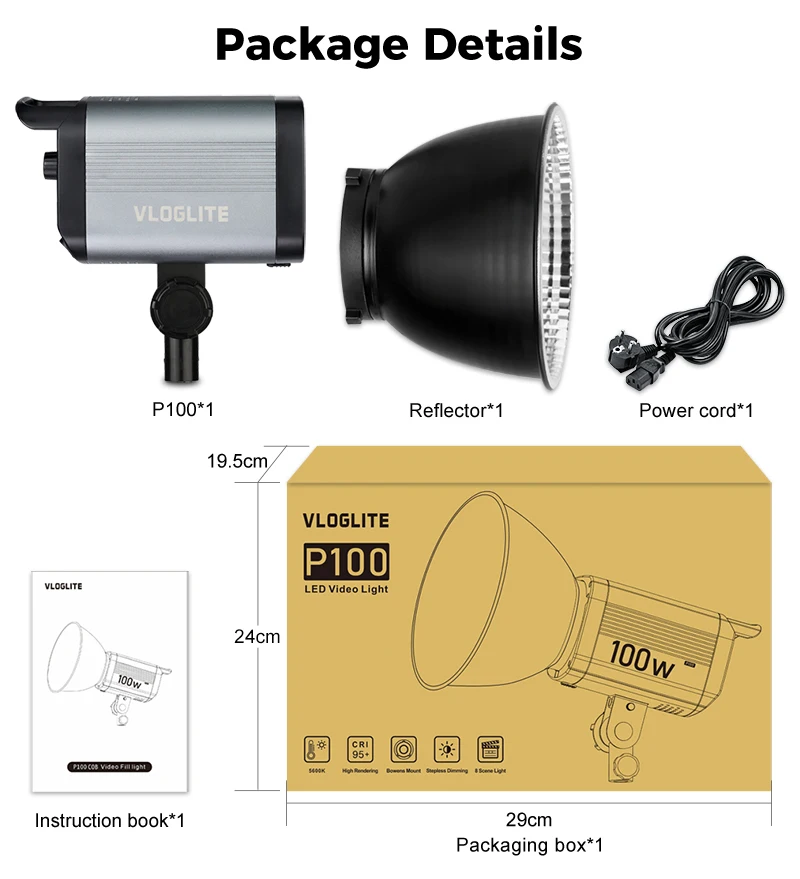 VLOGLITE 100W Professional COB LED Continuous Photographic Lighting Bowens Mount HD Live-streaming Video Studio Light