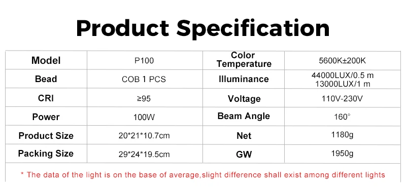 P100 COB video light