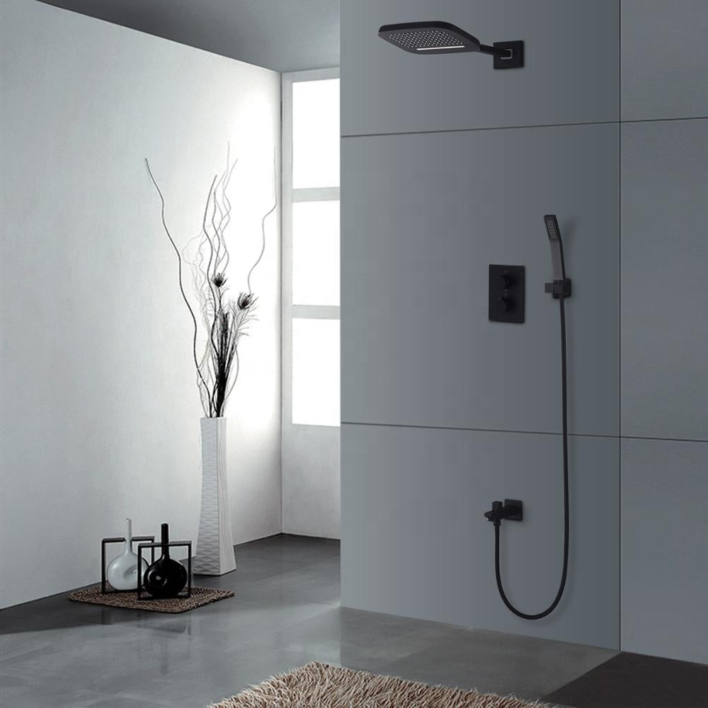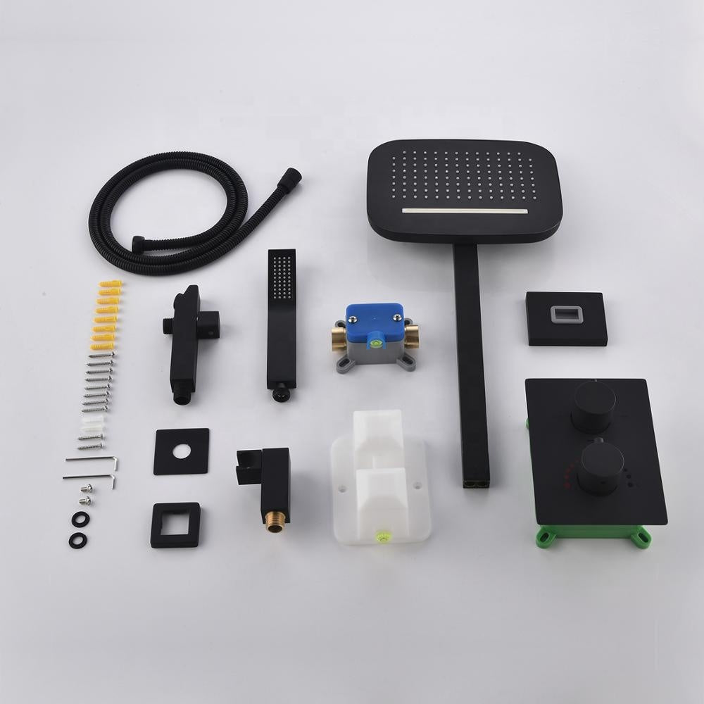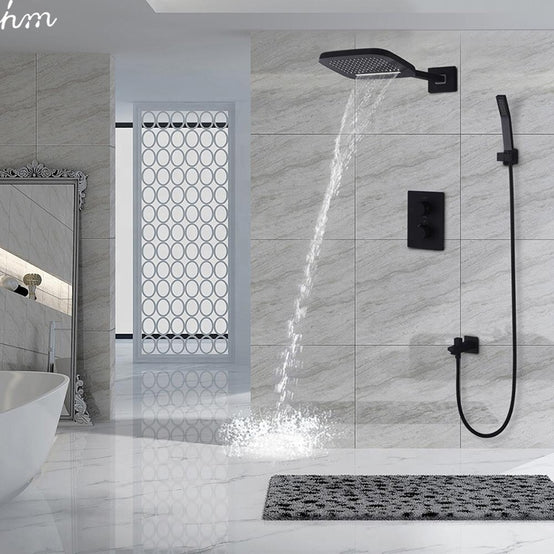 Wall Mounted New Products Waterfall Mode Black Color Thermostatic Faucets Rainfall Shower Sets