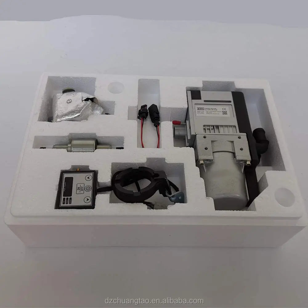 Parking heater without external power supply, can achieve the effect of warming up the car in winter without starting the vehicle. The product has an independent water pump, oil pump, installed in series between the engine and the car heater tank, with electricity taken from the vehicle battery, oil pump by computer control, from the original car fuel tank to extract a small amount of fuel, sent to the combustion chamber atomized and ignited by ignition plug, through the heat exchange system of the heater to add Heat antifreeze and circulate output to the engine, so that the temperature of the car engine and car heater gradually rise, when the water temperature reaches 60°C-80°C when the heater automatically stops.