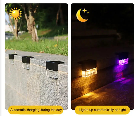 Waterproof Solar Fence Lights LED Solar Lamp Garden Lights Outdoor Solar Deck Light Sunlight RGB Gradient Decor Stair Fence Lamp