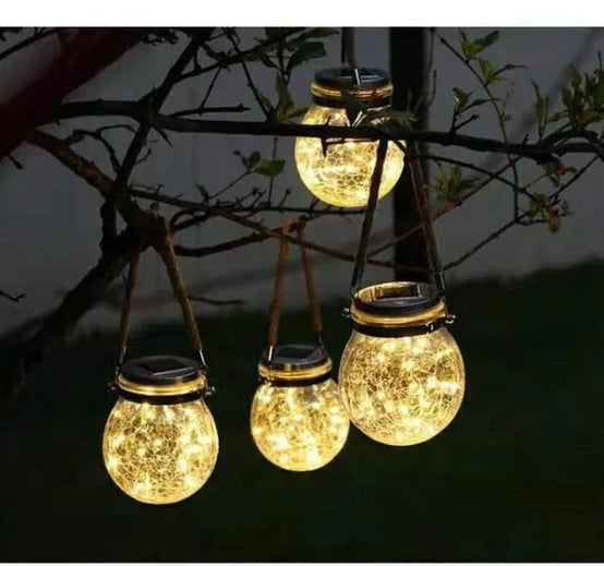 Hanging Solar LED Fairy Copper Rice Multi Colored Lights Outdoor Cracked Antique Glass Ball Garden Rechargeable Garland Jar