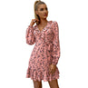 Weixin Double Crazy Ruffle Trim Wrap Tie Side Ditsy Mini Floral Dress