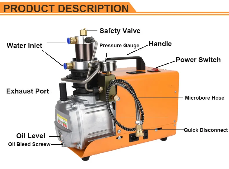Wholesale 4500Psi 300Bar 30Mpa Electric High Pressure PCP Pump for Riffle Airguun Scuba Inflator Tank