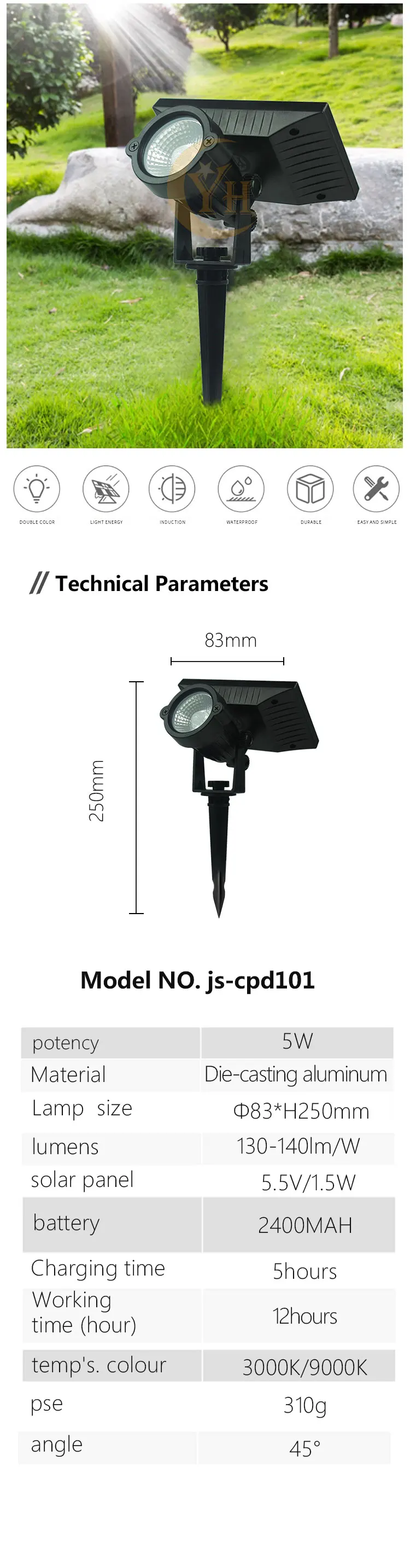 YOUCAN Wholesale 5W LED Fence Pathway Waterproof Solar lamp Powered Wall Security Outdoor Night LED Solar Garden Lights