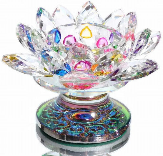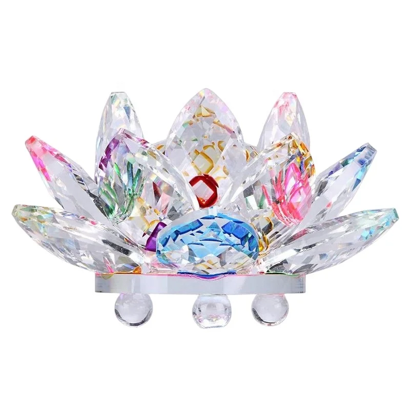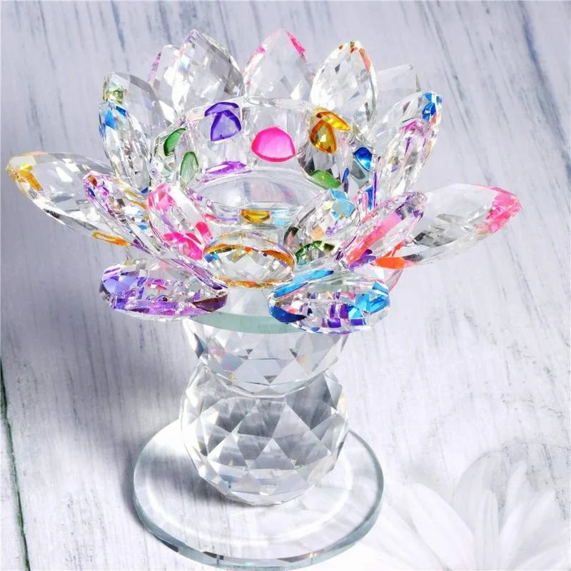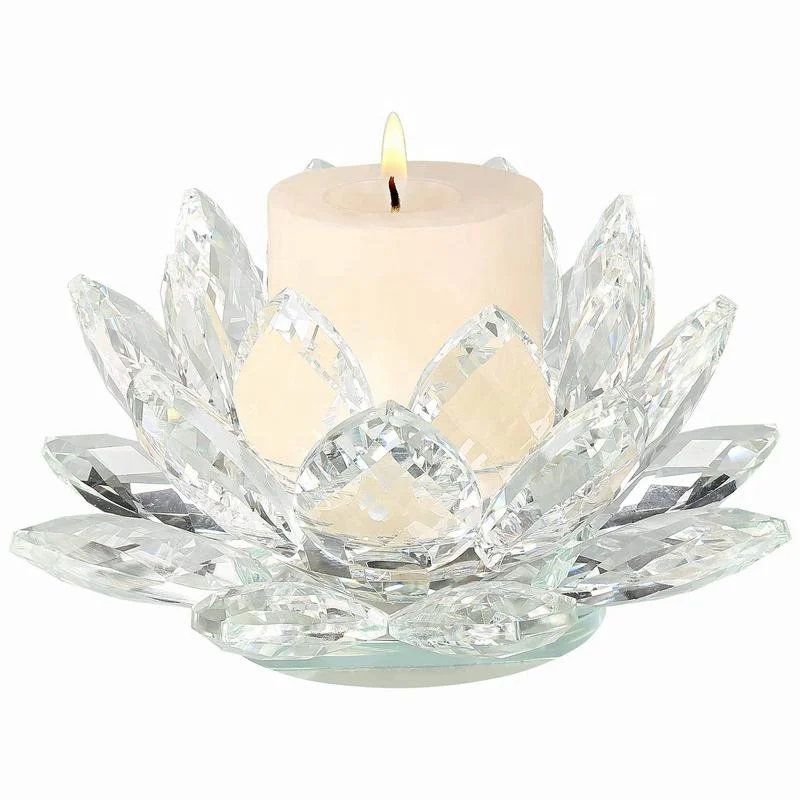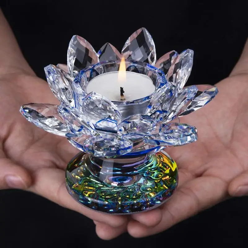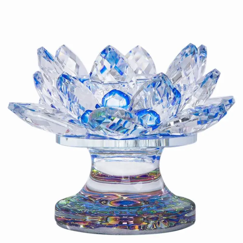 Wholesale Clear Colorful Crystal Lotus Flower Candle Holder Crystal Tealight Candle Holder