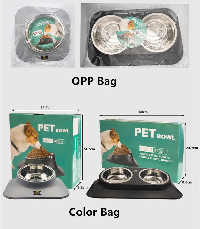 Wholesale Feeding Collapsible Elevated Stainless Steel Water Pet Dog Cat Double Bowl Feeder