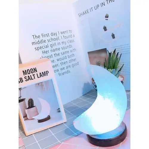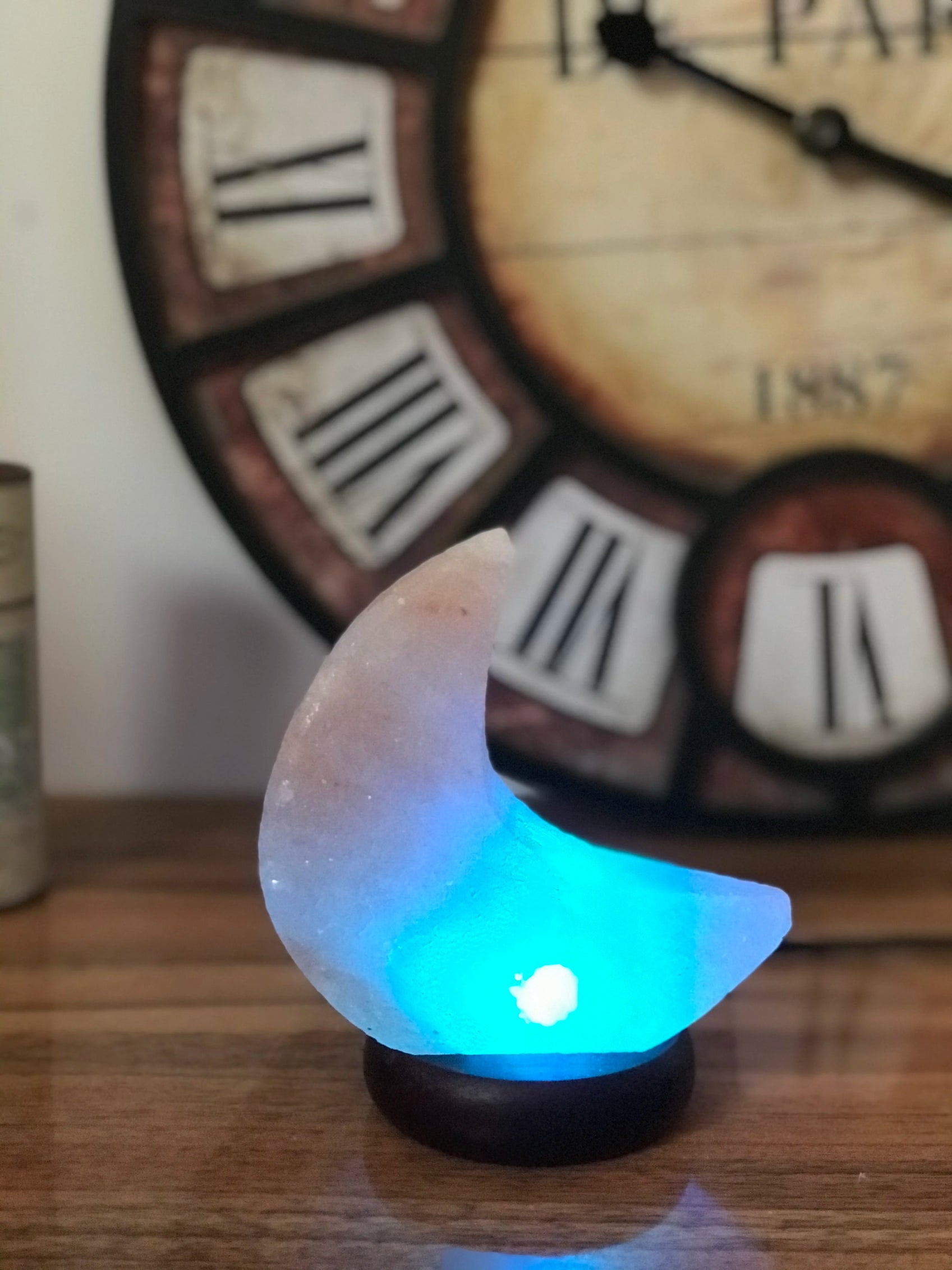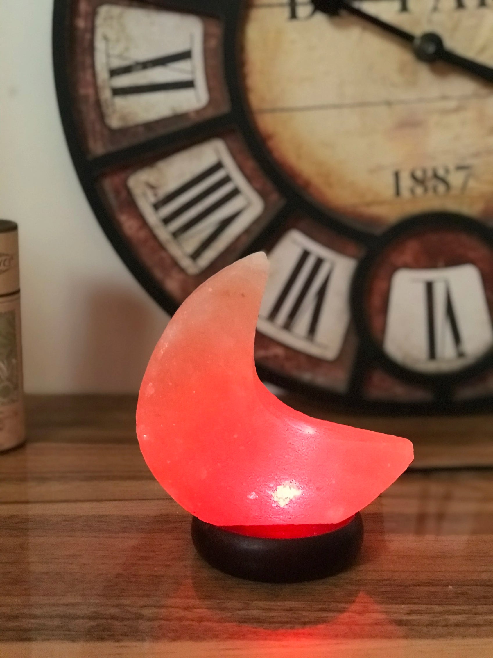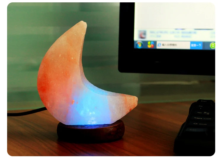 Wholesale handcrafted moon shape USB himalayan salt bedside lamp