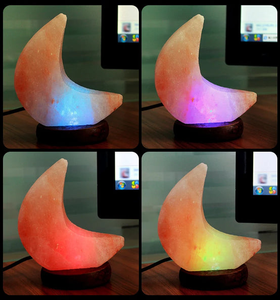 Wholesale handcrafted moon shape USB himalayan salt bedside lamp USB moon shape