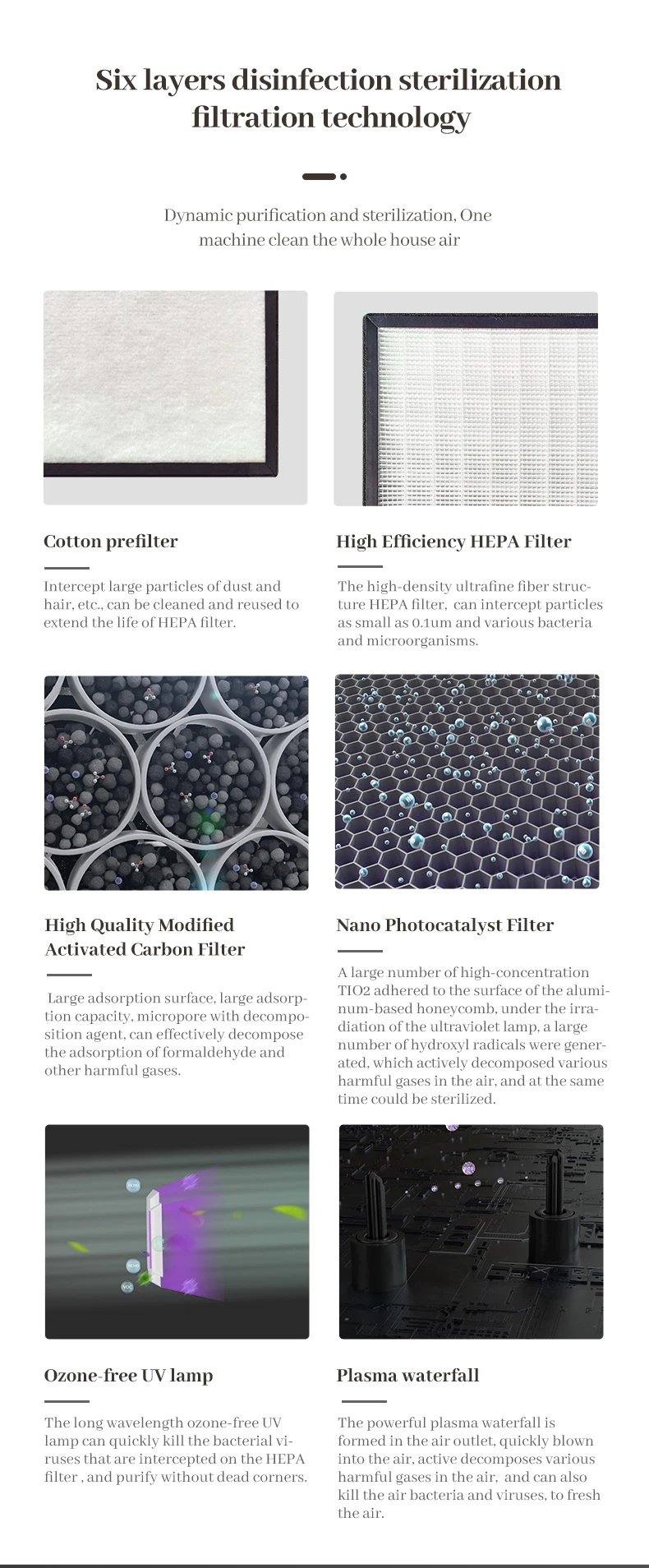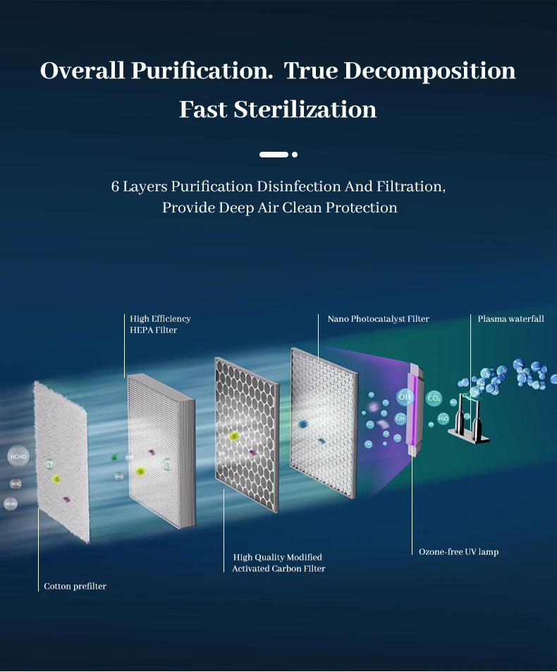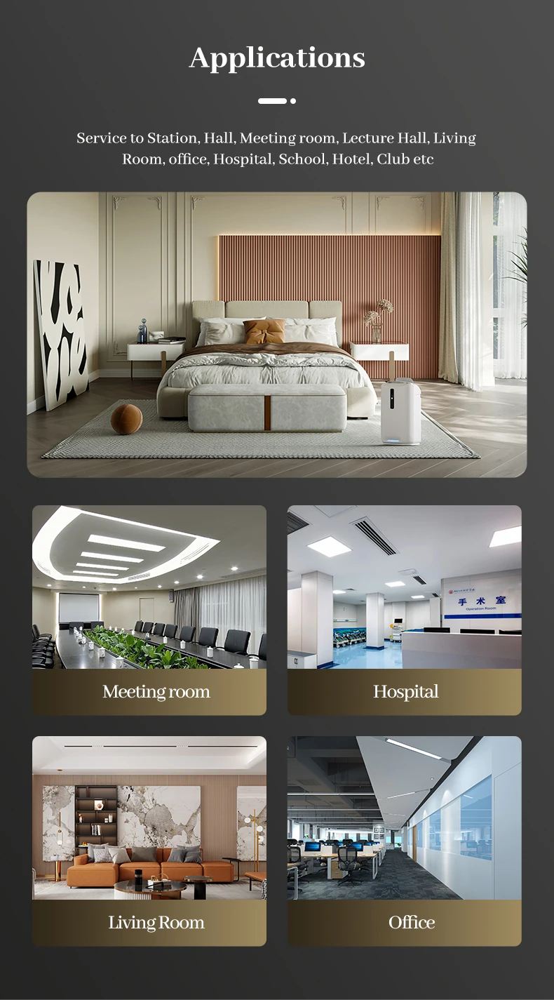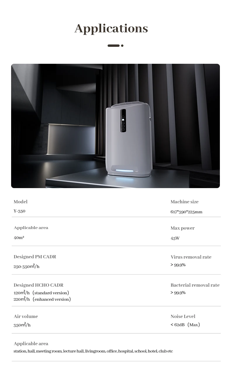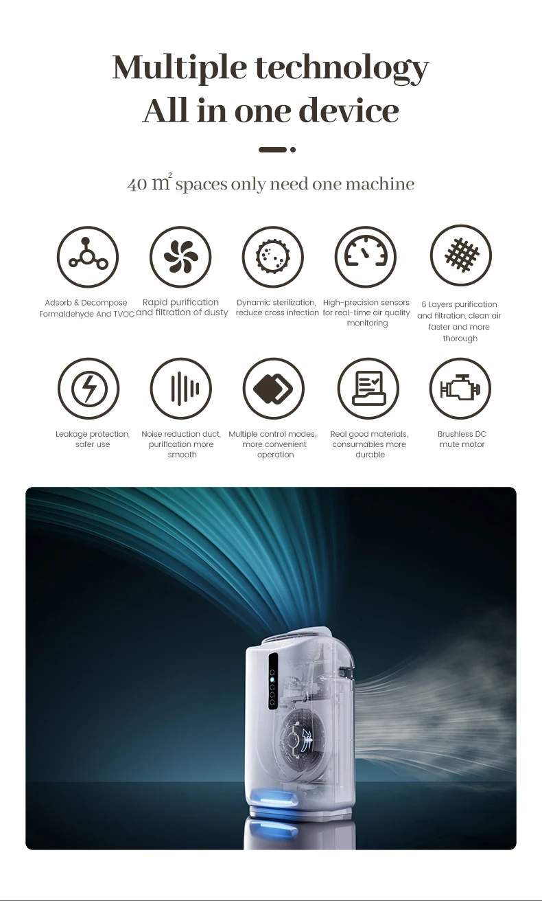elimination.Products use low energy, high efficiency, moisture - proof efficient motor. M20 air purifier adopts hidden display