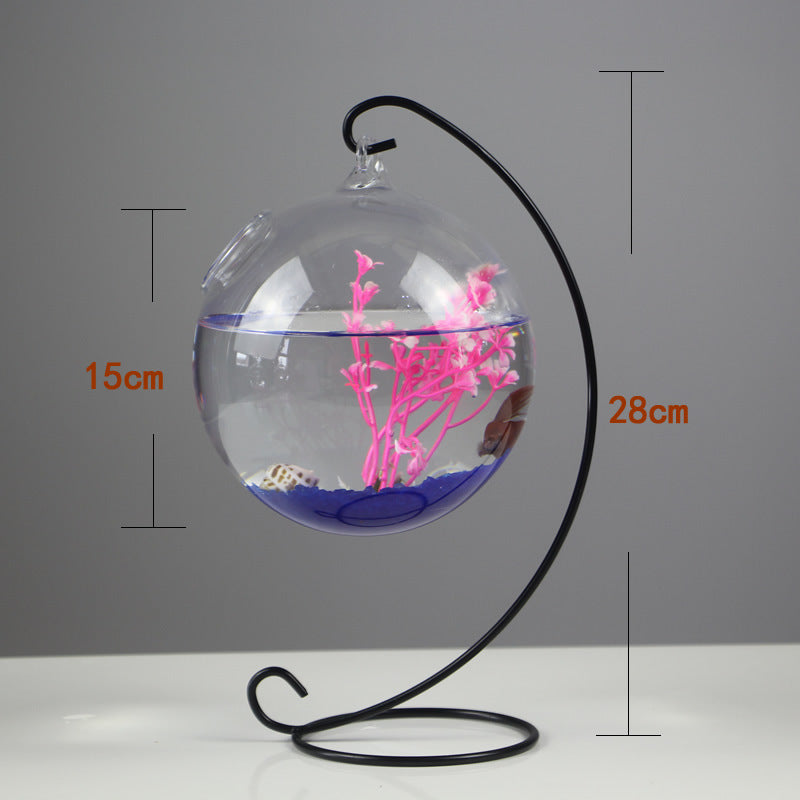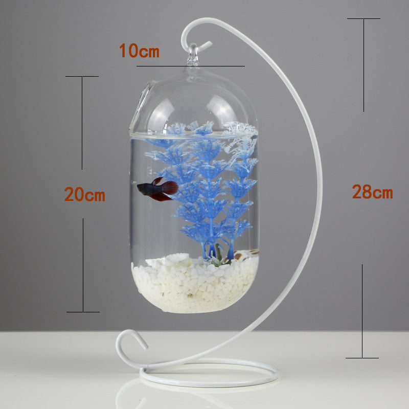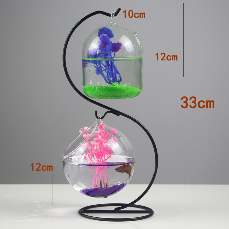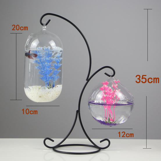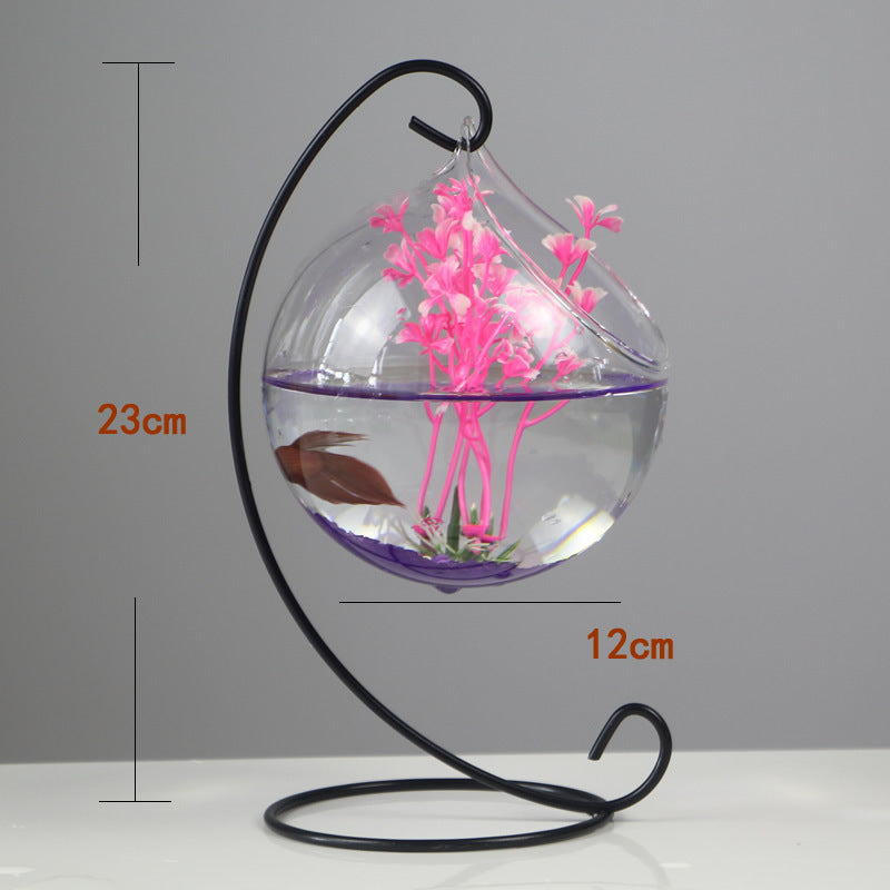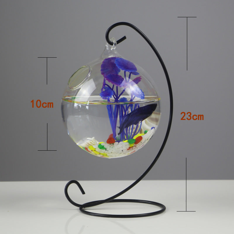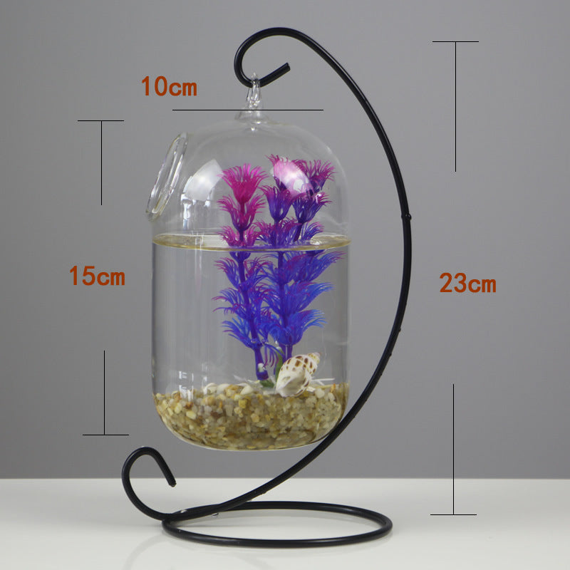 Wholesale of Transparent Glass Small Fish Tanks by Manufacturers Iron Hanging Goldfish Tanks for Residential Decoration
