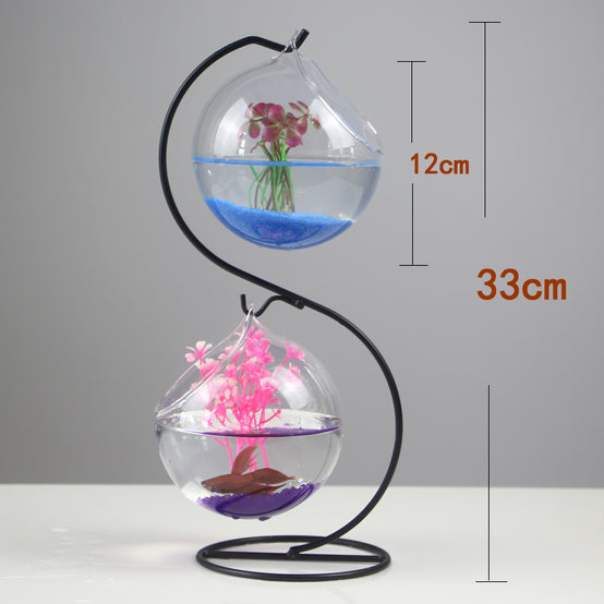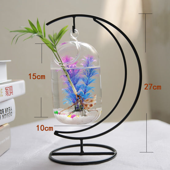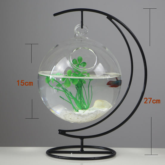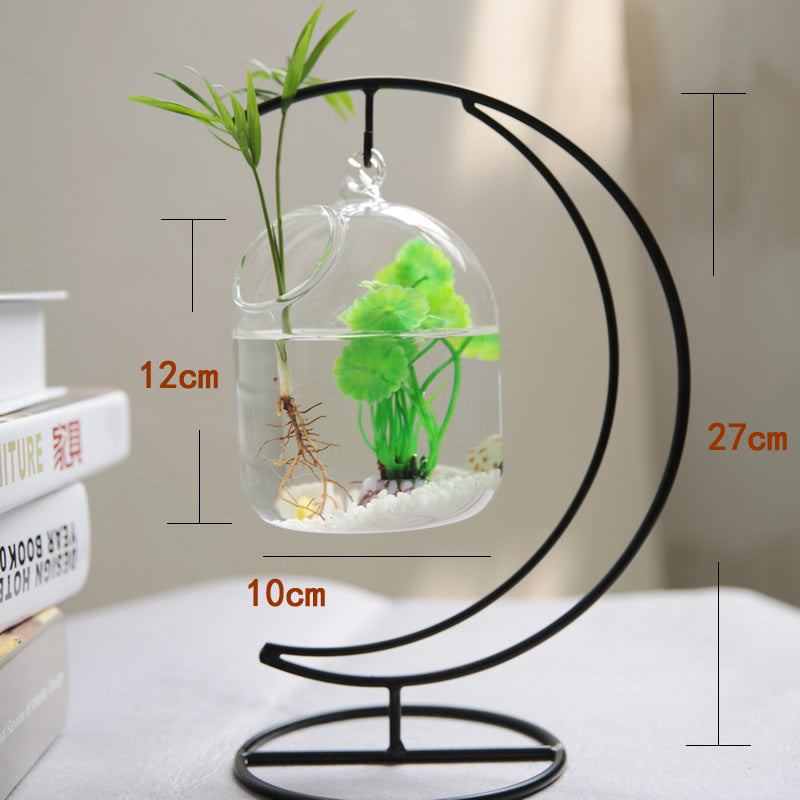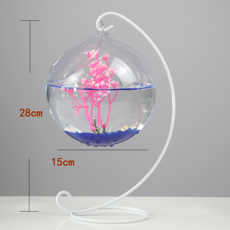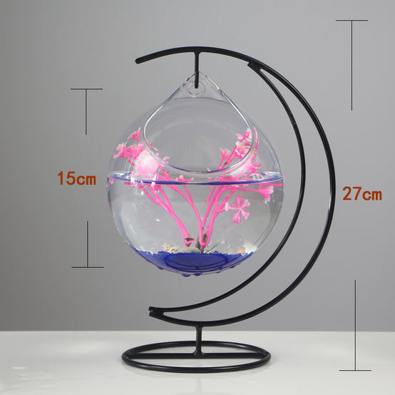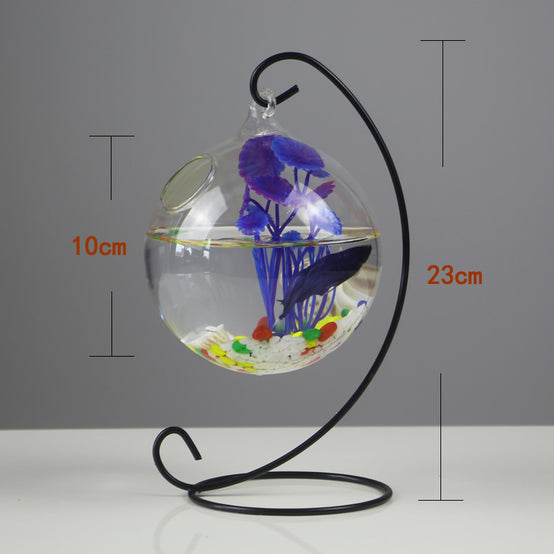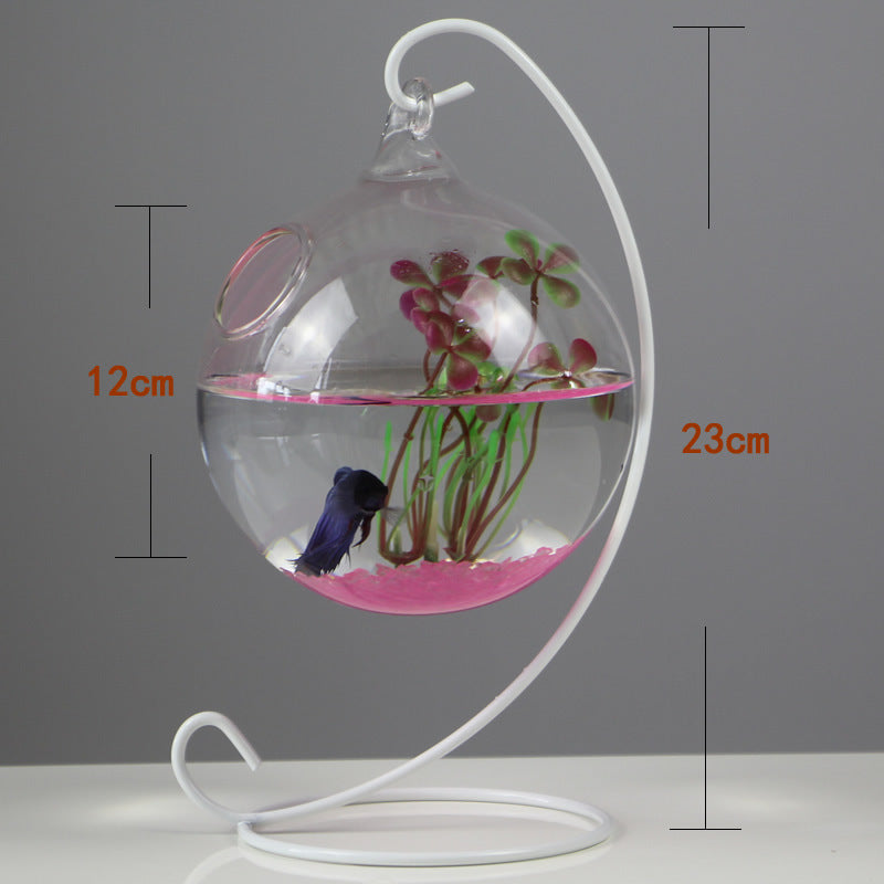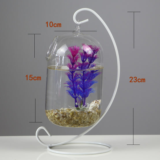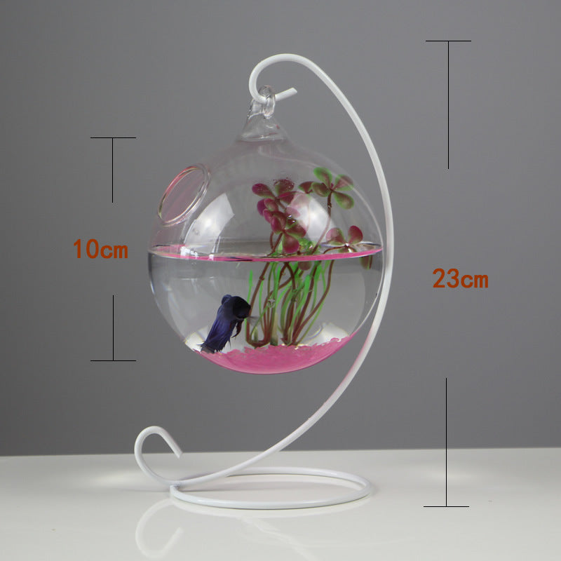 Wholesale of Transparent Glass Small Fish Tanks by Manufacturers Iron Hanging Goldfish Tanks for Residential Decoration
